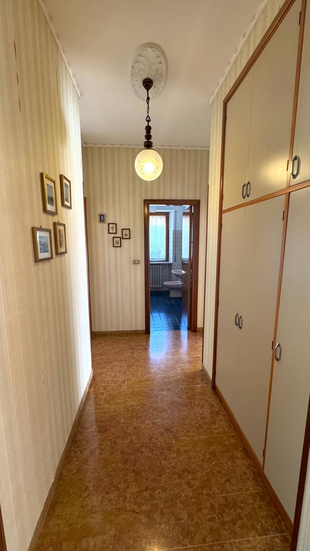 L'Appartamento si presenta in discreto stato di conservazione con finiture tipiche della sua epoca costruttiva (metà anni '70), quali pavimentazioni in marmettoni, infissi in legno provvisti di vetri singoli e necessita di opere di ammodernamento interno.