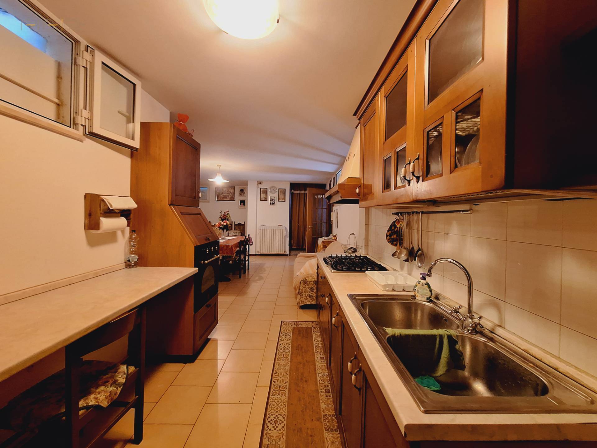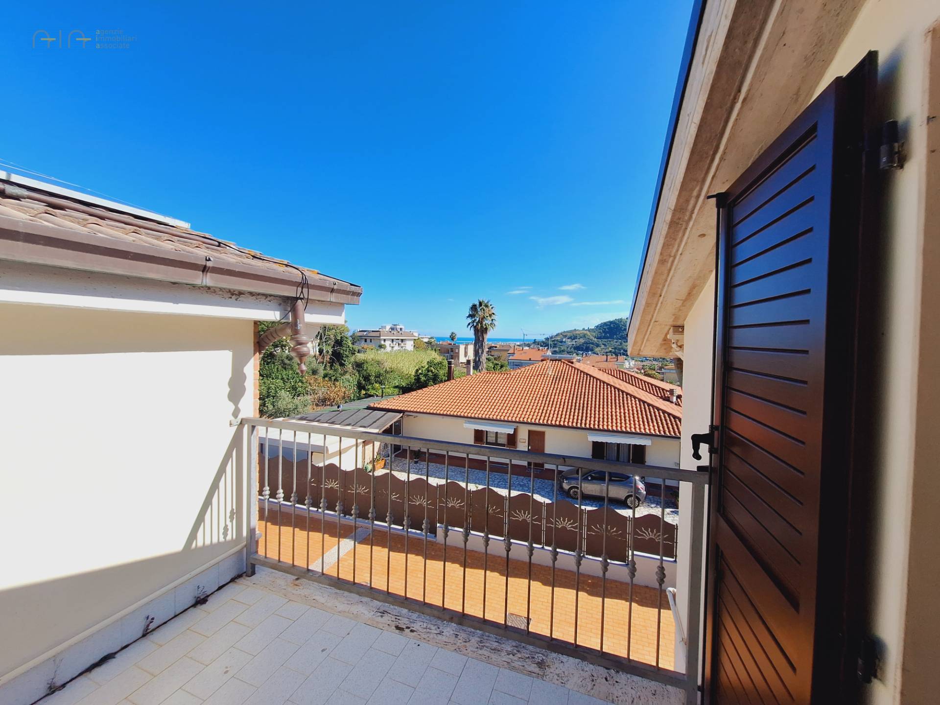 al piano seminterrato di circa 120 mq. troviamo un ampio garage, fondaco, cantina e wc; tramite scala interna o direttamente con accesso dall'esterno si arriva al piano terra di circa 80 mq. ed è suddiviso in soggiorno, cucina, camera matrimoniale, bagno e studio, mentre il piano secondo avente destinazione lavanderia è di circa 90 mq. con altezza massima di 3.20 mt. e minima di 1.80 mt. oltre ad un terrazzino vista mare di circa 6 mq. .