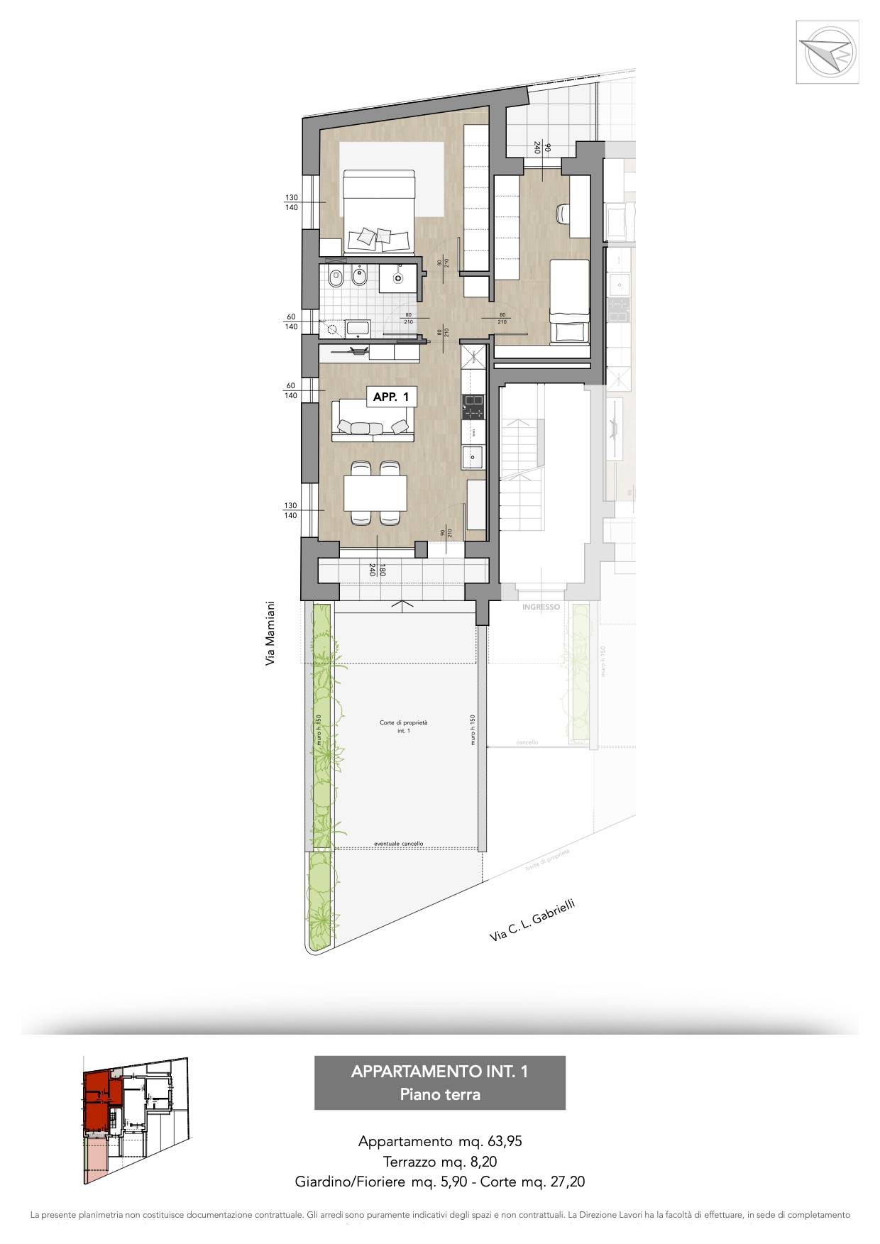 Completo di corte privata antistante delle dimensioni di 41 mq. circa, recintata ed accessibile anche con l'auto.