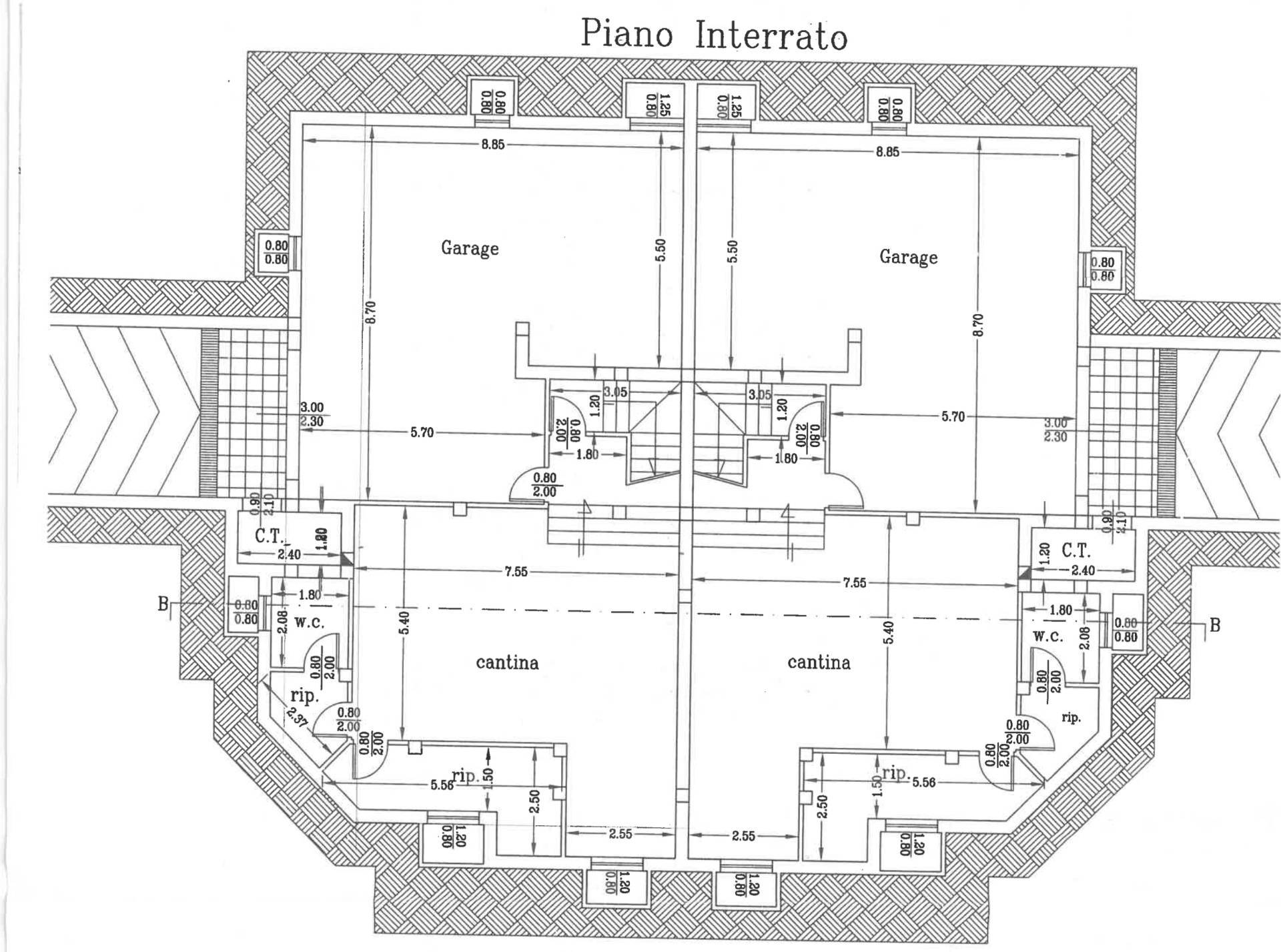 PIANO INTERRATO: dimensioni di circa 330 mq. adibito a locale autorimessa, cantina, ripostigli e locale tecnico;