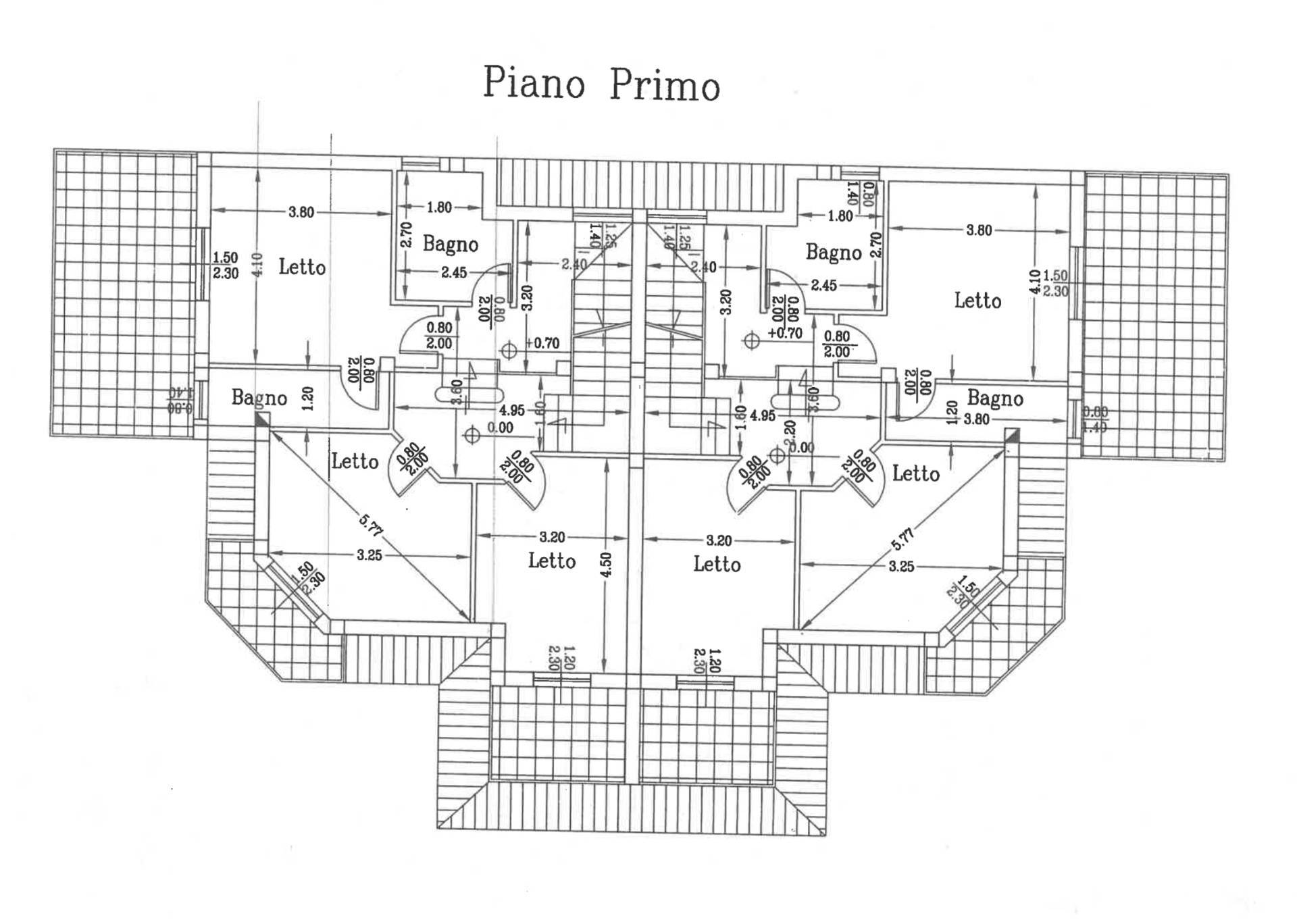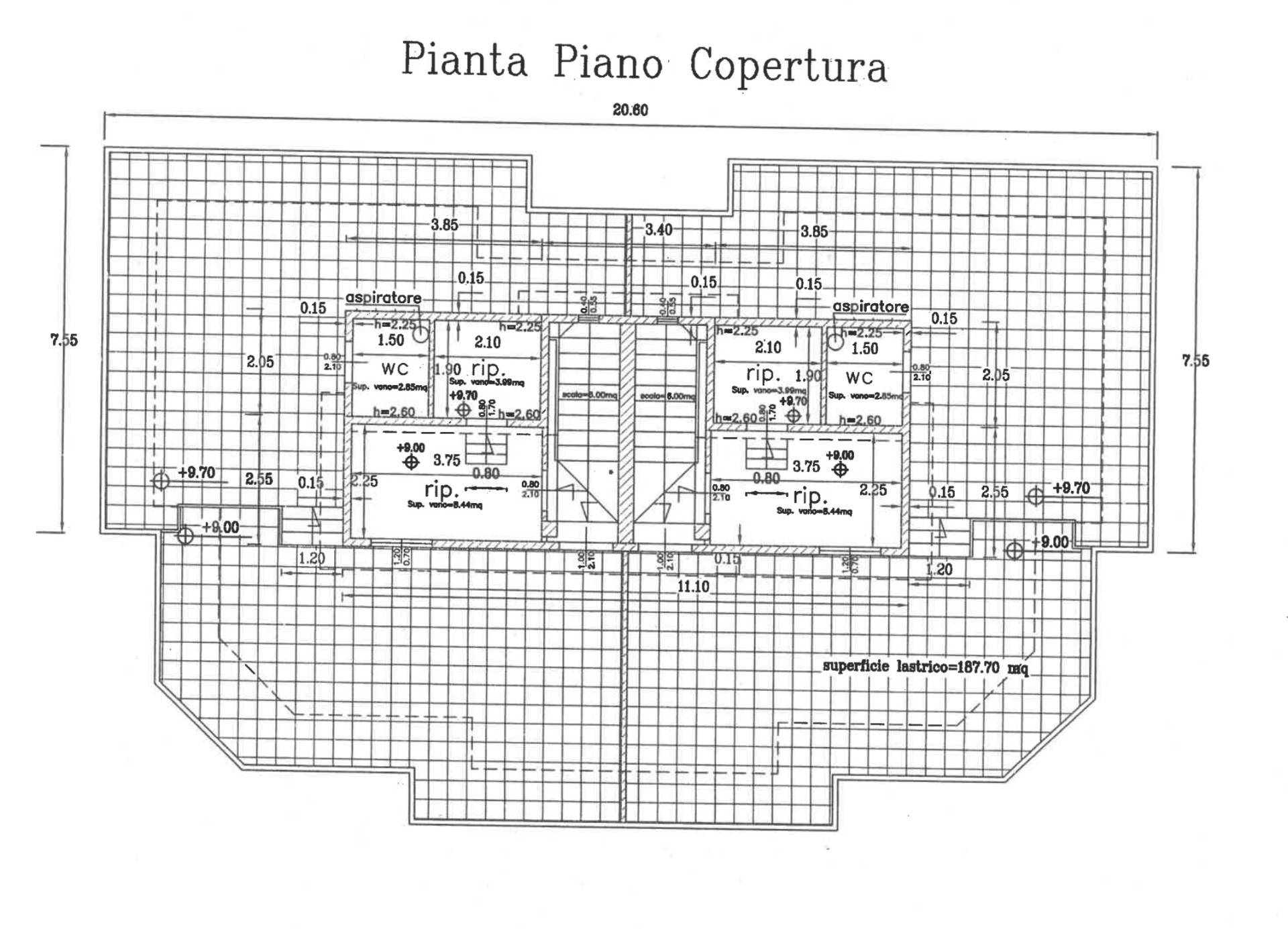 PIANO PRIMO: dimensioni di circa 170 mq. adibito a zona notte e fornito di ampi terrazzi perimetrali;