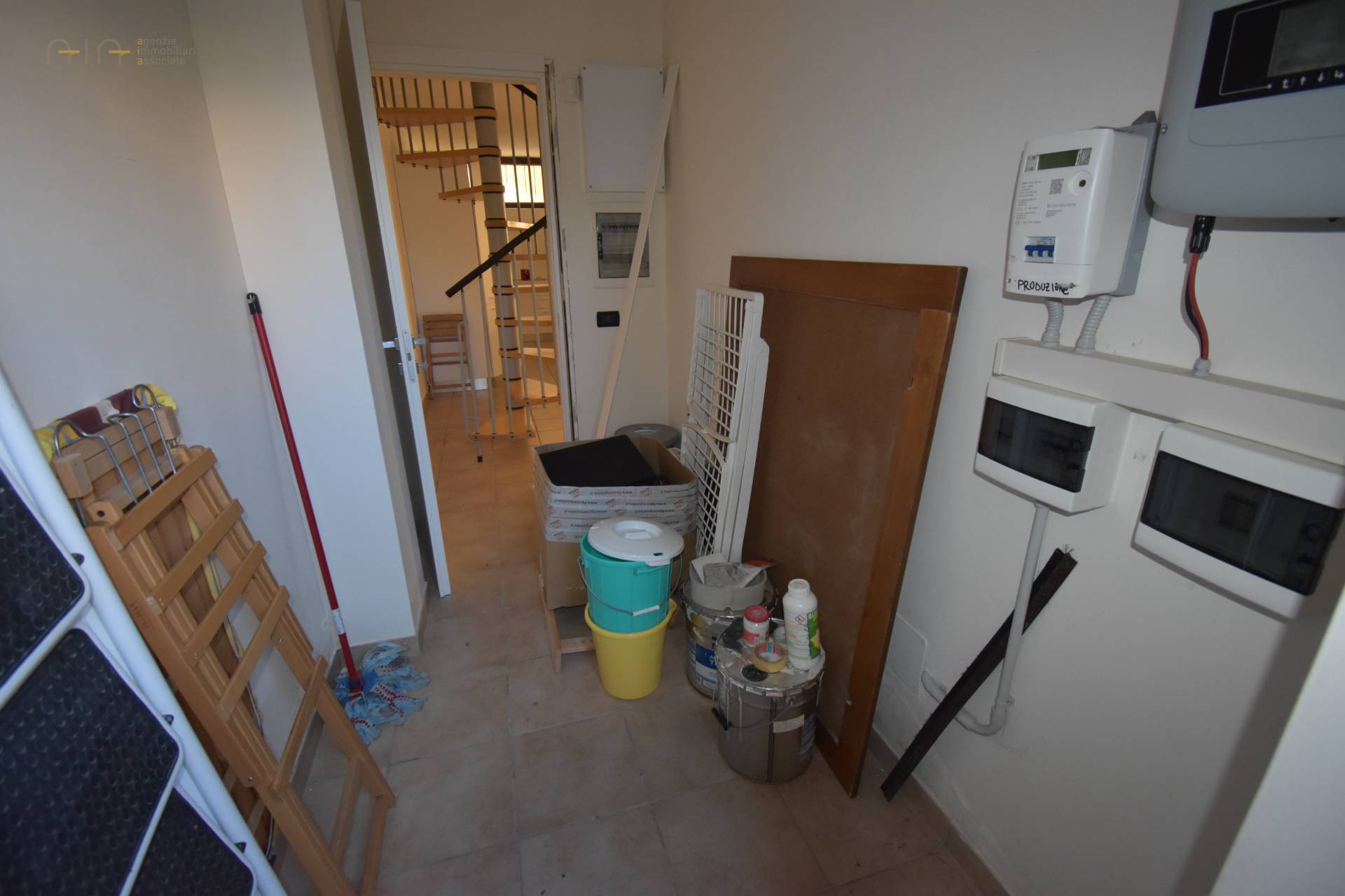 Tramite la scala interna a chiocciola, posta nella zona giorno, si accede al piano seminterrato dove troviamo: soggiorno con angolo cottura, camera matrimoniale, ripostiglio e bagno con doccia e finestra.
