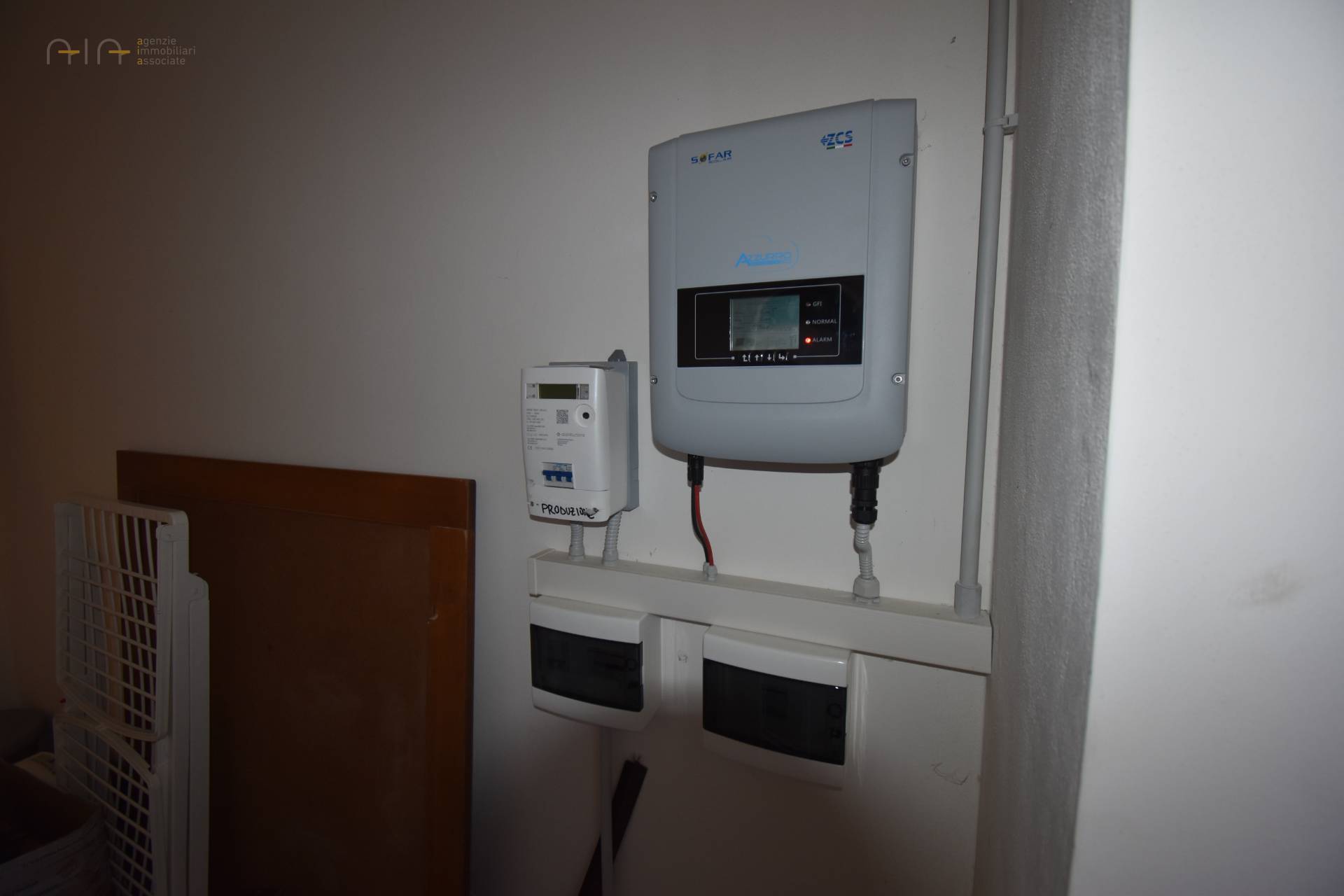L'Appartamento dispone di: condizionatori, infissi doppi vetri, zanzariere, persiane, controsoffitto nella zona giorno, pavimenti in gres porcellanato in tutti gli ambienti, portone blindato, pannelli solari, scalda salviette nel bagno principale, autoclave, videocitofono.