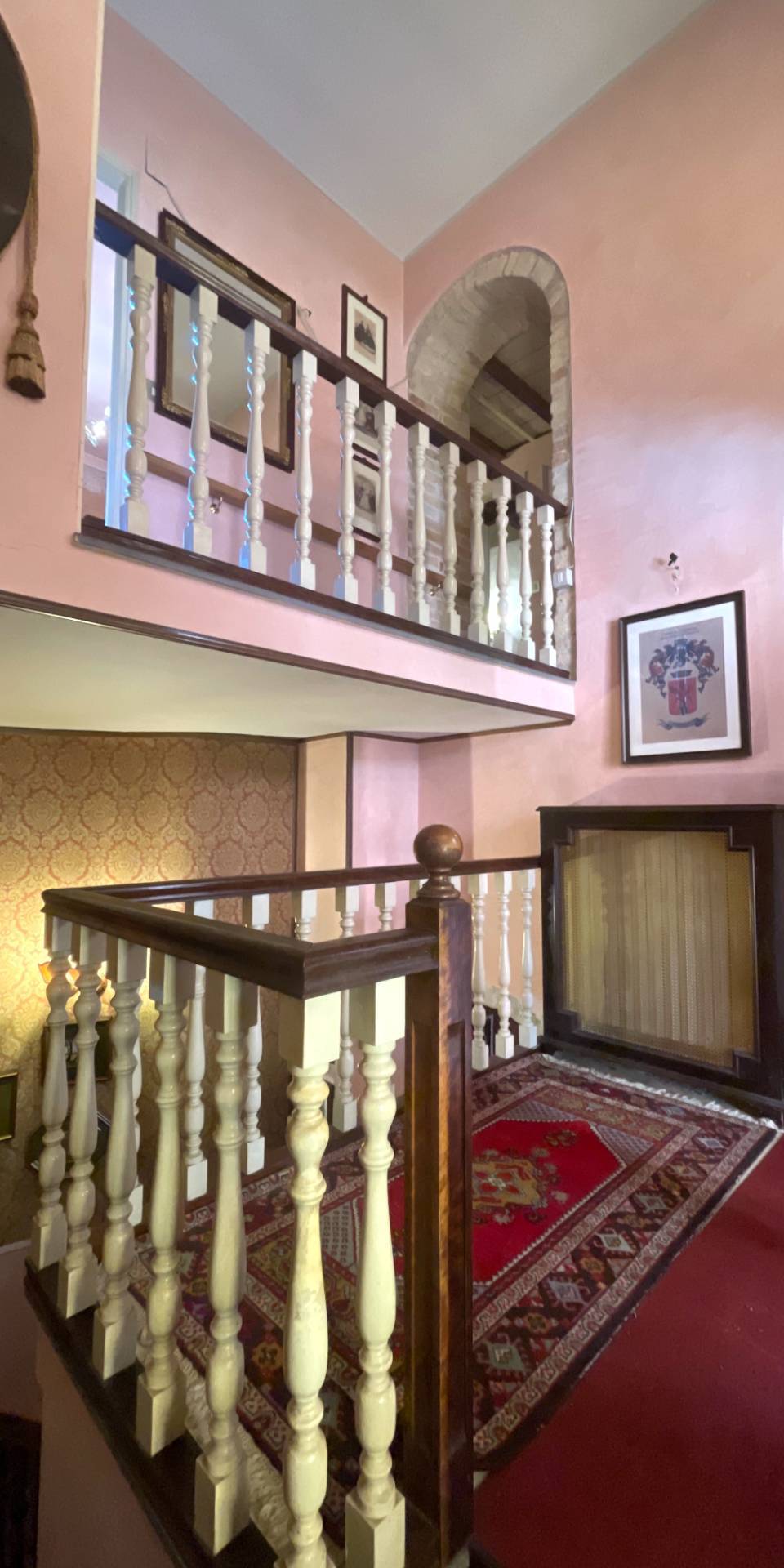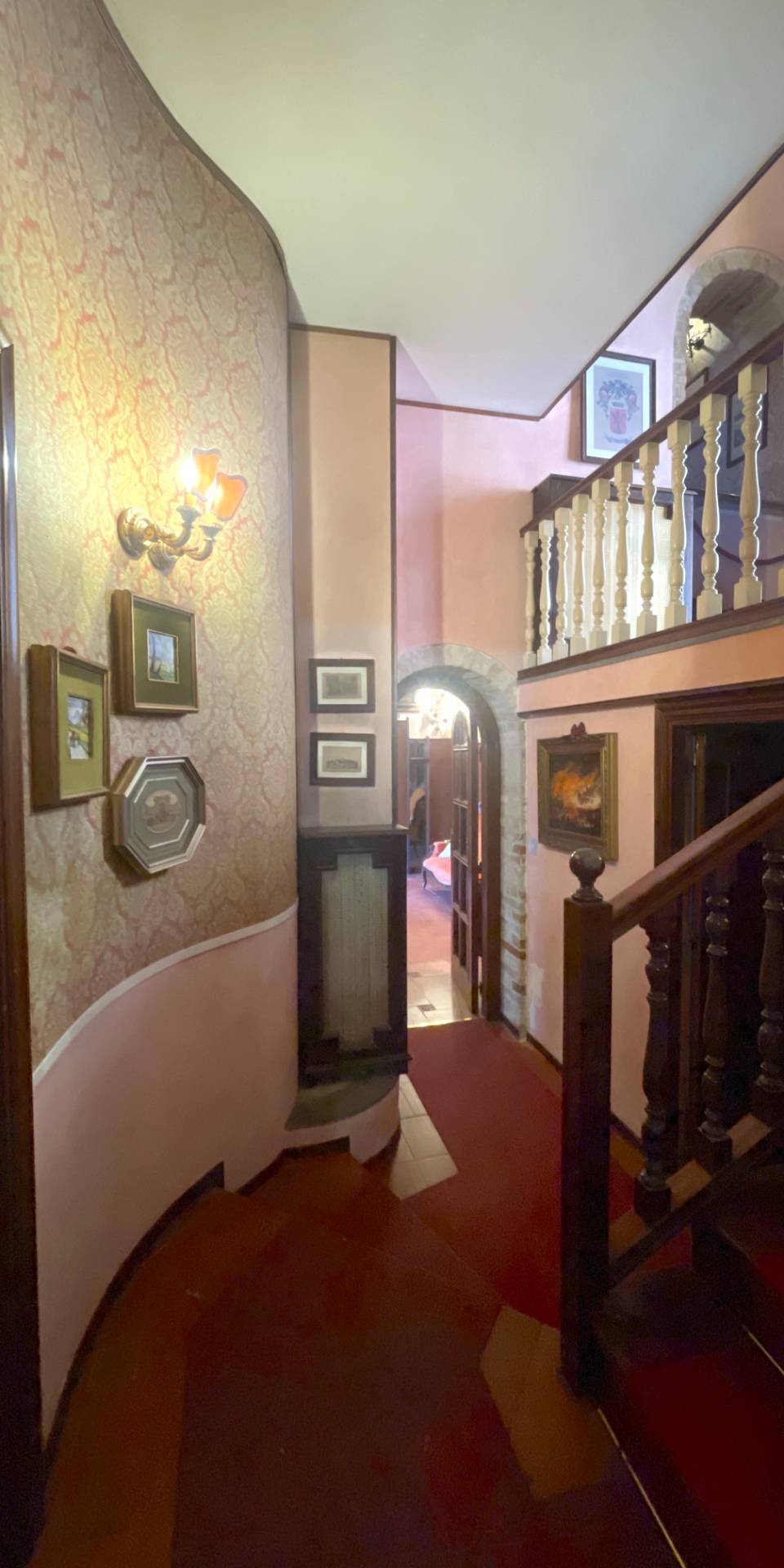 Ingresso su ballatoio intermedio e scala che conduce al giardino inferiore. Qui troviamo una caratteristica zona pranzo con camino e angolo cottura, un salottino e un ampio soggiorno con splendide volte a crociera, elementi tipici dell'architettura del Paese Alto.