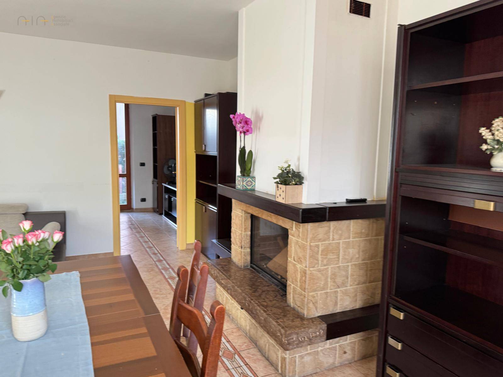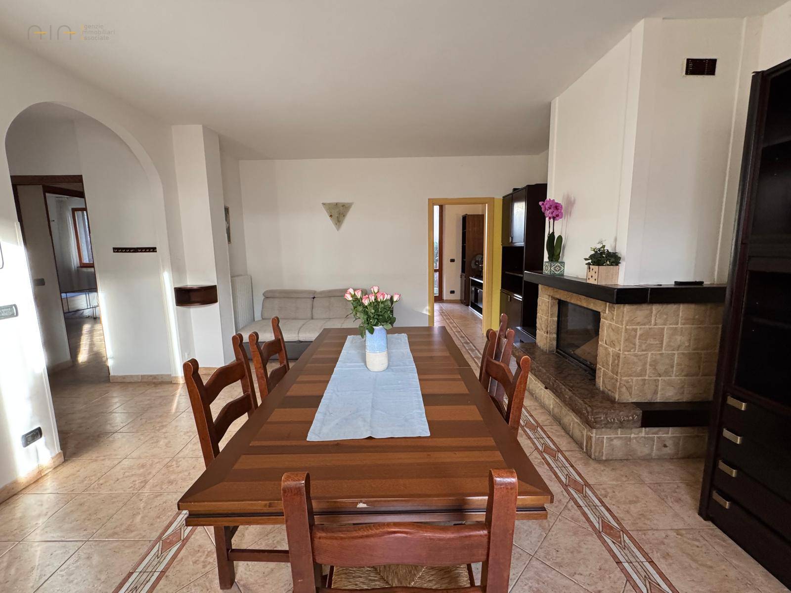 Comodo e luminoso Appartamento della superficie complessiva di 90 mq circa, al piano terra, composto da ingresso, sala da pranzo con camino, cucina, due camere da letto ed un bagno con doccia.
