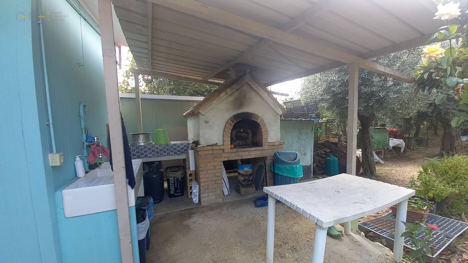 La proprietà si presenta completamente recitata e suddivisa in zona relax con accessorio, comodo portico, angolo barbeque e forno a legna e zona orto con piante di ulivo e frutta.