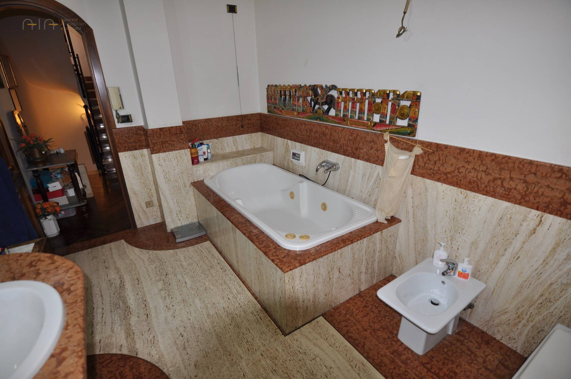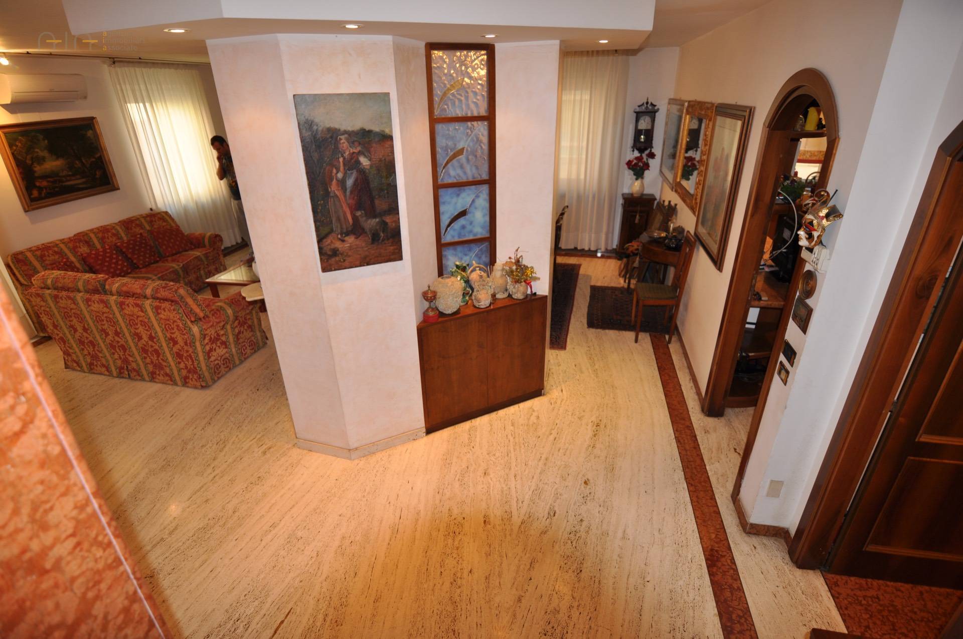 Il primo livello, raggiungibile percorrendo una rampa di scale, è composto da ingresso su disimpegno, grande salone doppio con camino, cucina abitabile, bagno con antibagno e camera/studio. La scala interna ci conduce al secondo livello utilizzato come zona notte, nel quale troviamo una spaziosa camera da letto matrimoniale, una comoda camera doppia e la camera padronale con bagno en-suite e spazio spogliatoio separato.