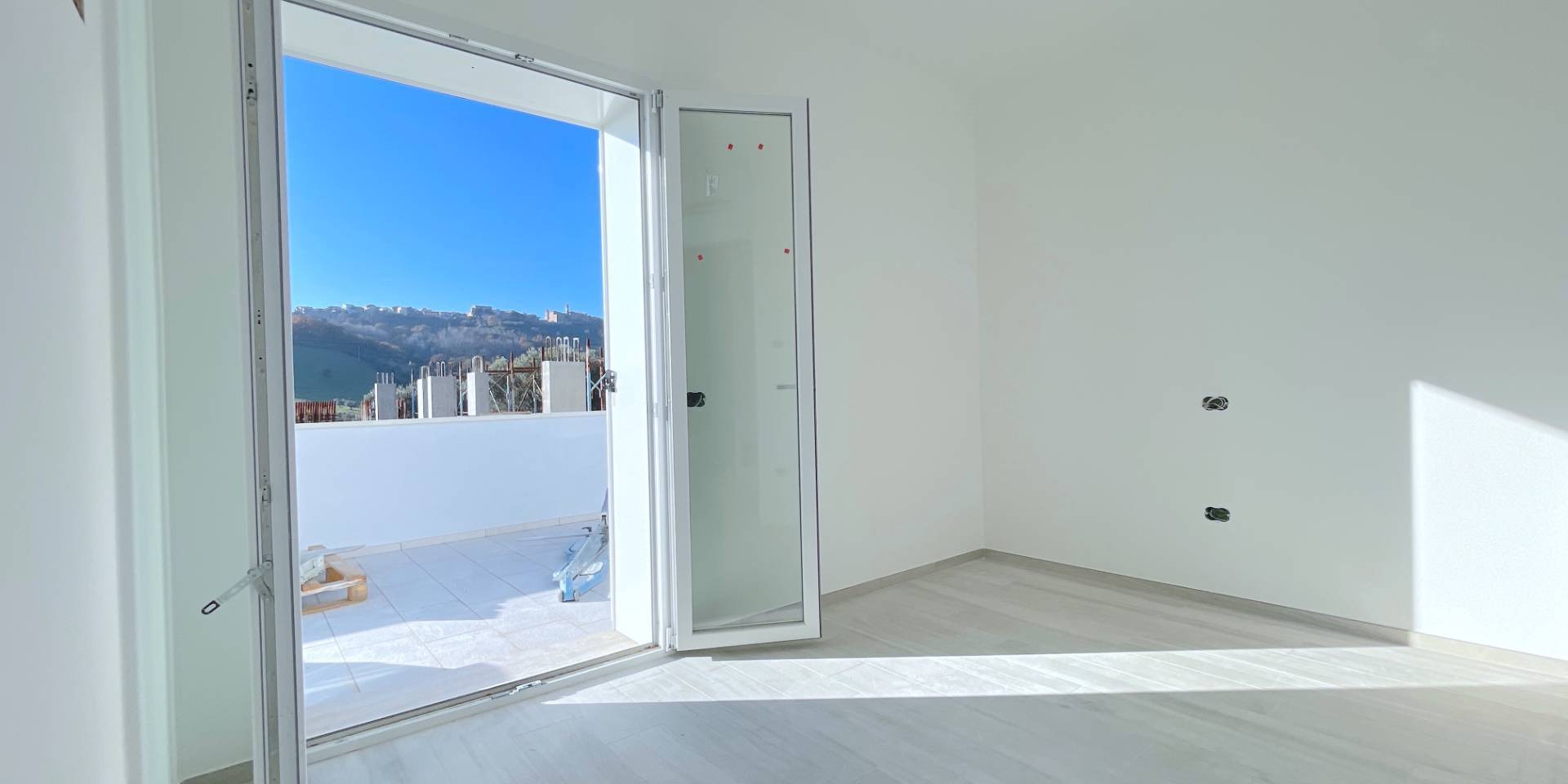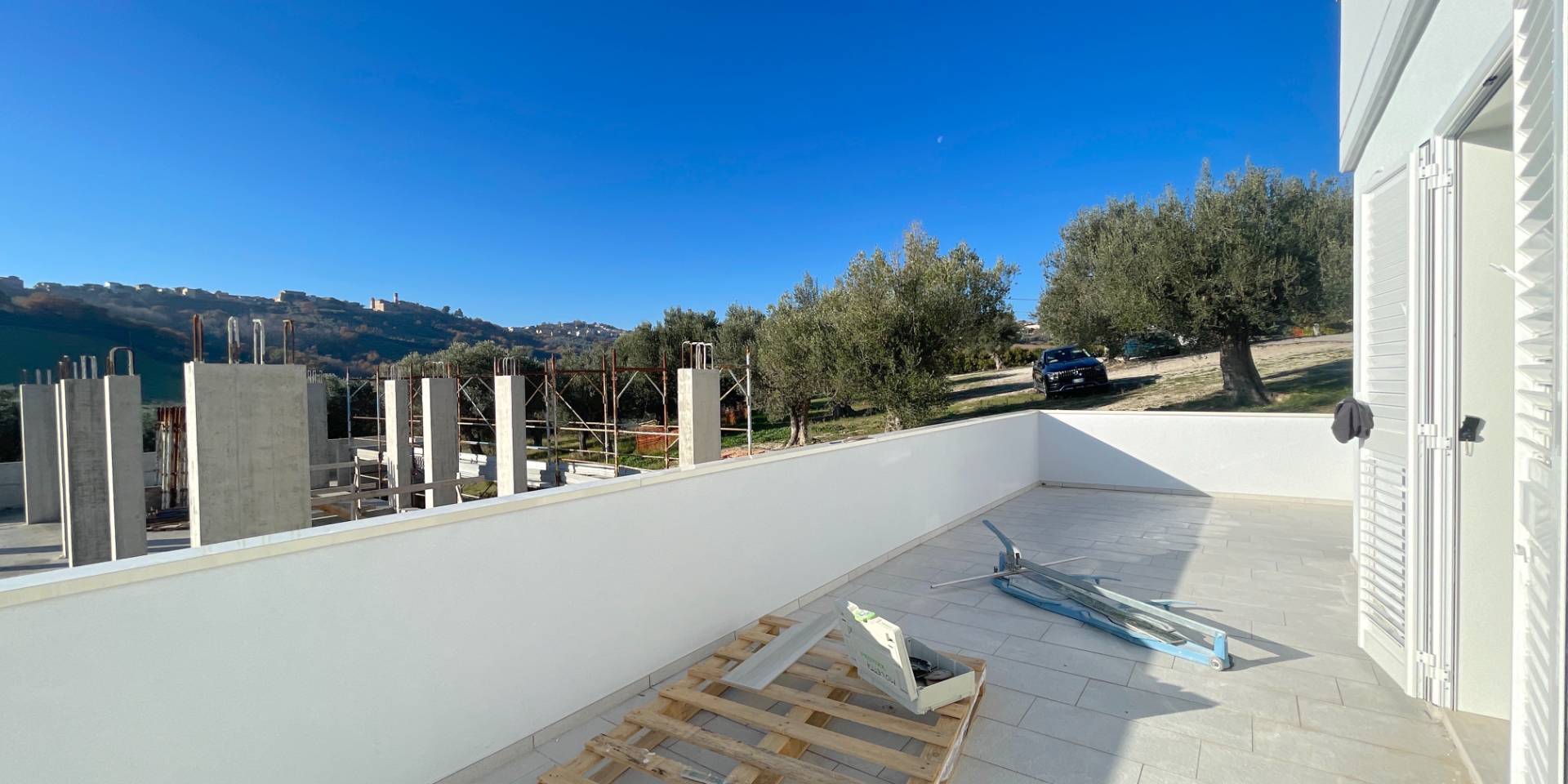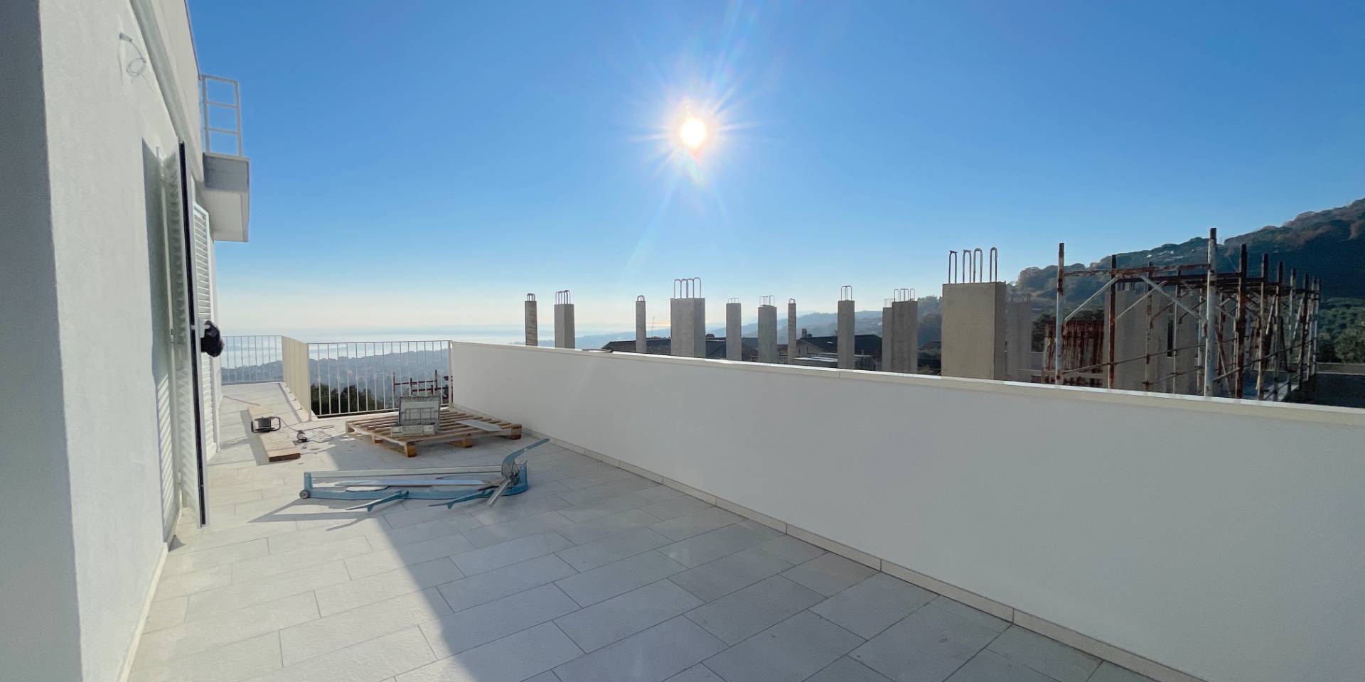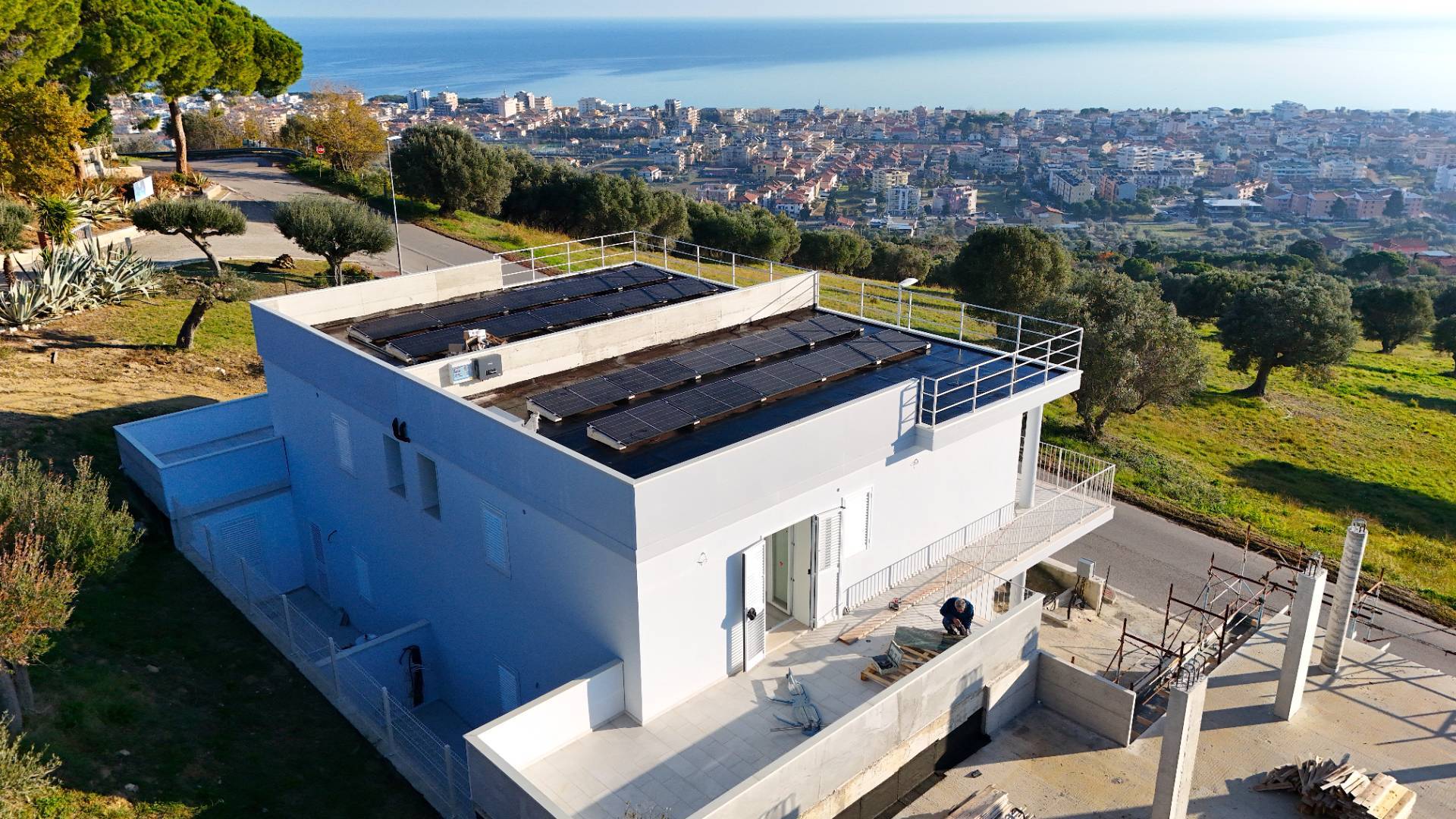 Villino bifamiliare in corso di costruzione, dallo stile contemporaneo e pulito, sviluppato su due livelli per una superficie coperta complessiva di circa 135 m². Una soluzione moderna, pensata per chi cerca comfort, efficienza e spazi ben distribuiti, senza rinunciare alla vista mare.