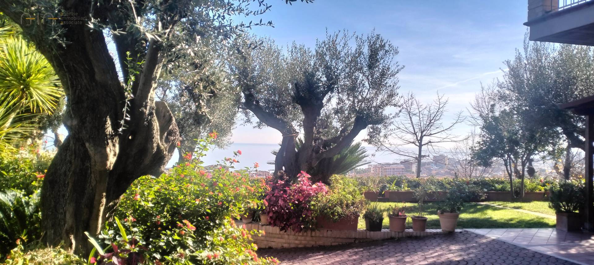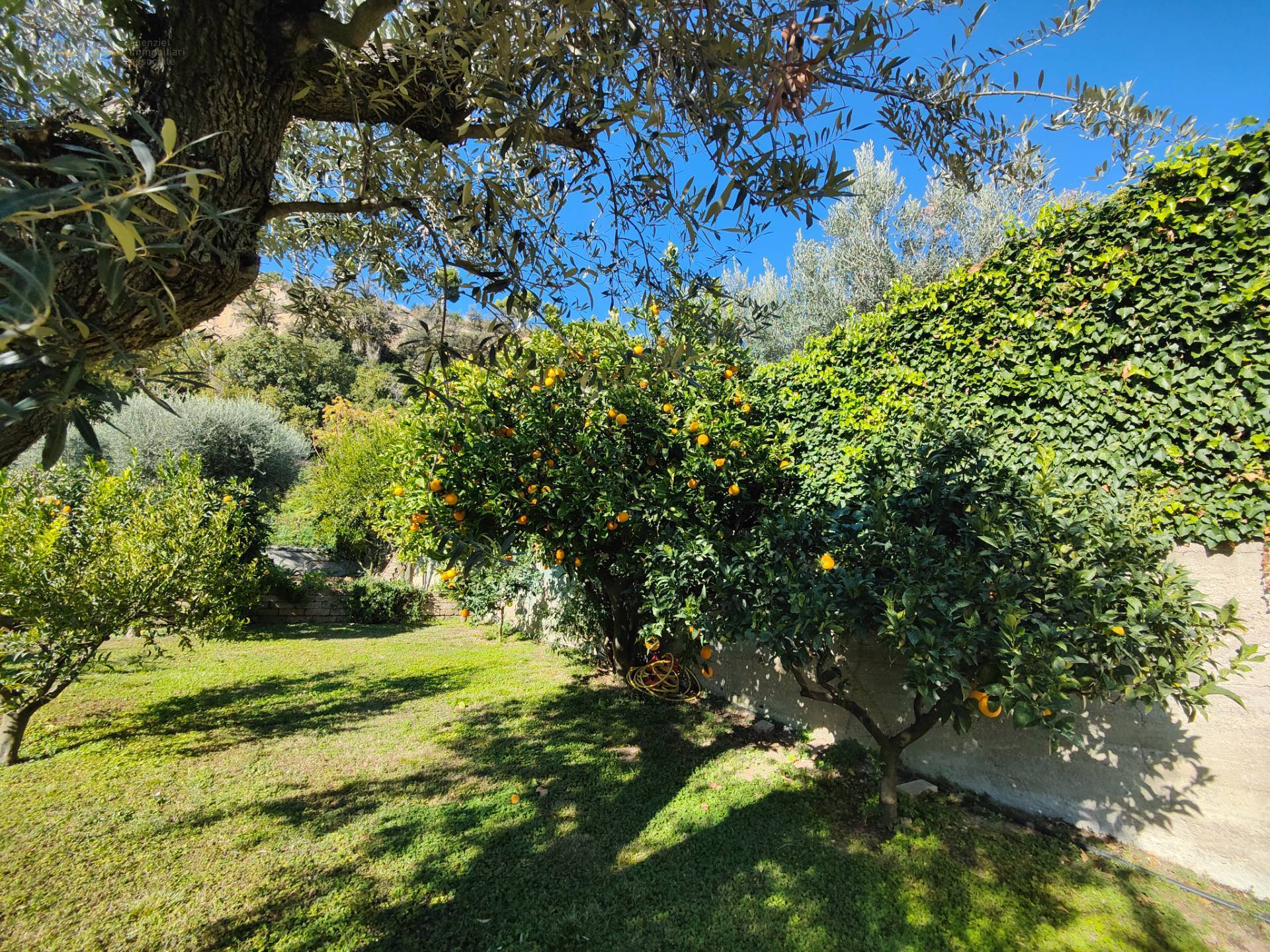 La proprietà si raggiunge dalla strada attraverso un breve vialetto carrabile dotato di cancello automatico ed immediatamente è possibile ammirare uno dei fiori all'occhiello della proprietà, il giardino che la circonda ricchissimo di verde e totalmente recintato, su di esso esistono angoli immersi nel verde dove poter sostare e godere della vista sul mare, del silenzio e dei profumi generati dalla presenza di numerose piante di agrumi, ulivi e di ornamento; inoltre esiste una zona living attrezzata con pergola e gazebo da utilizzare per momenti conviviali. Per il mantenimento e benessere della vegetazione, esiste un pozzo di attingimento che garantisce abbondanza di acqua tutto l'anno. Altro grande punto di forza della proprietà è la fantastica vista ad est, dal giardino e ancor di più dagli affacci dei piani superiori si può godere di un'incomparabile vista a 180 gradi sul mare con la vista che spazia fino al porto di San Benedetto e ancora più a sud fino alla Maiella.