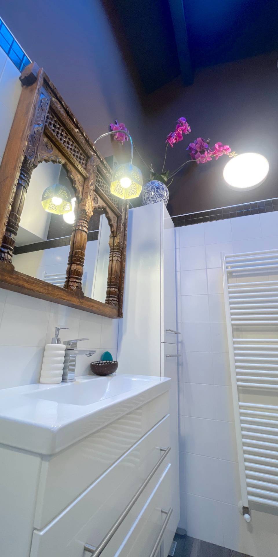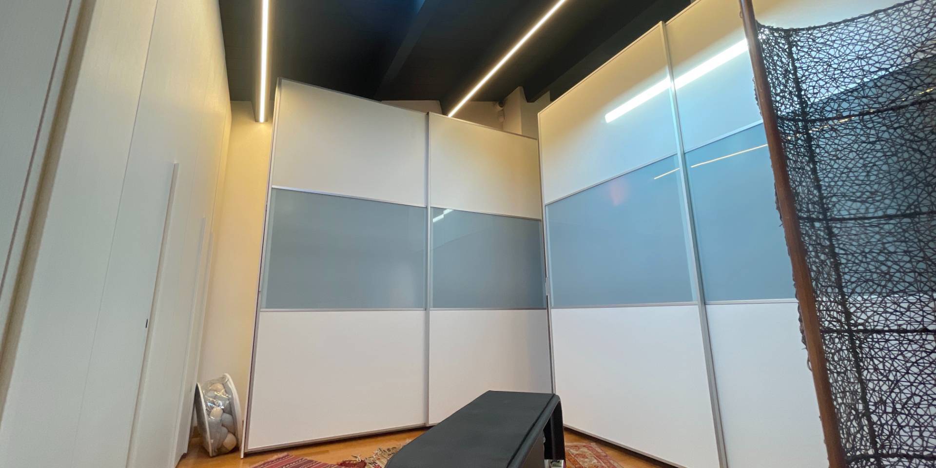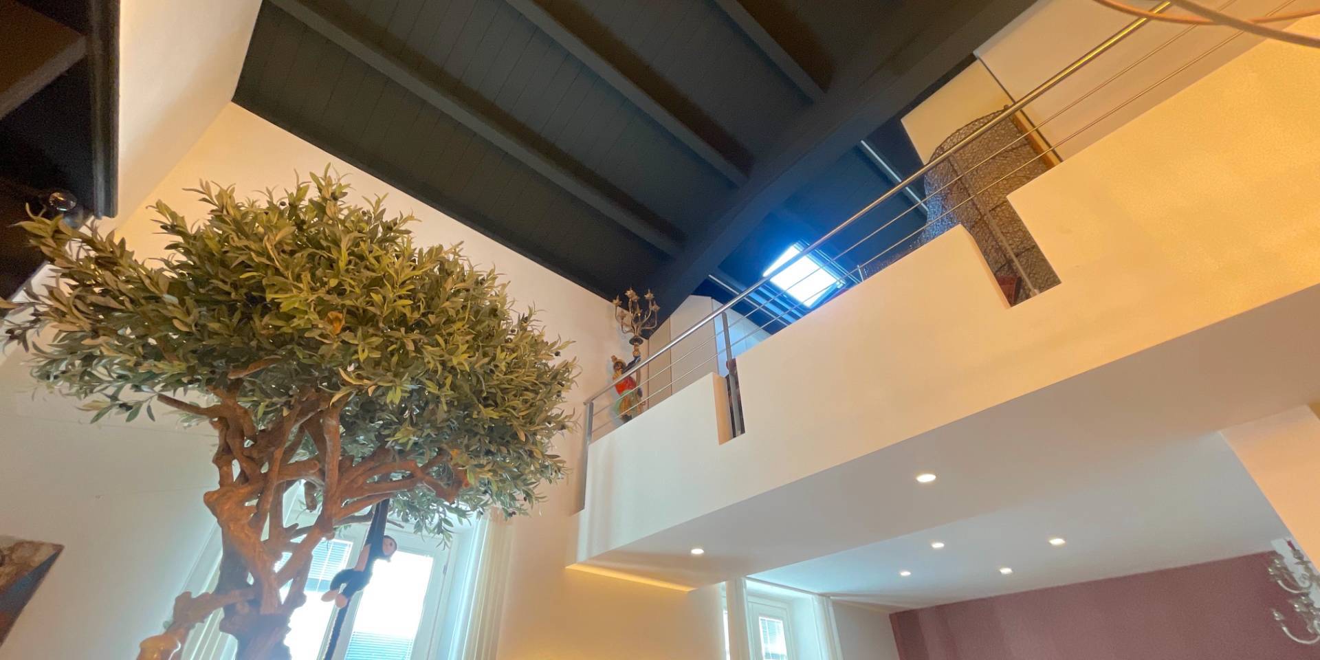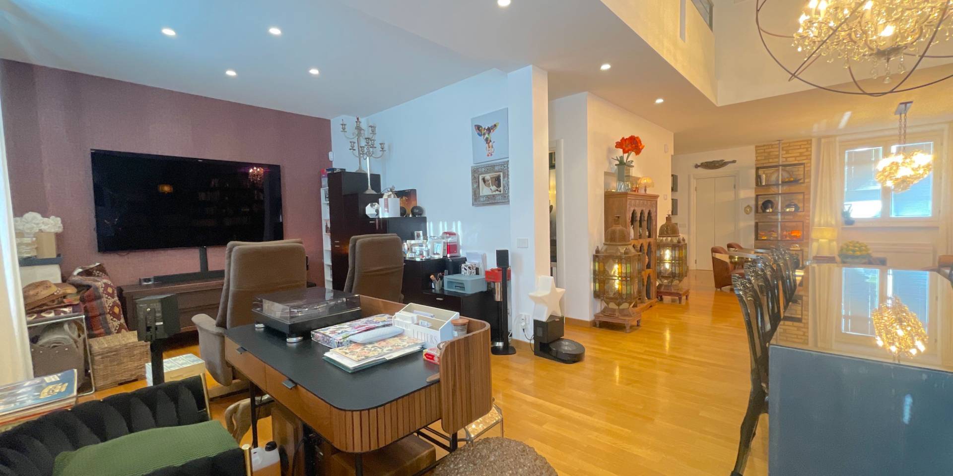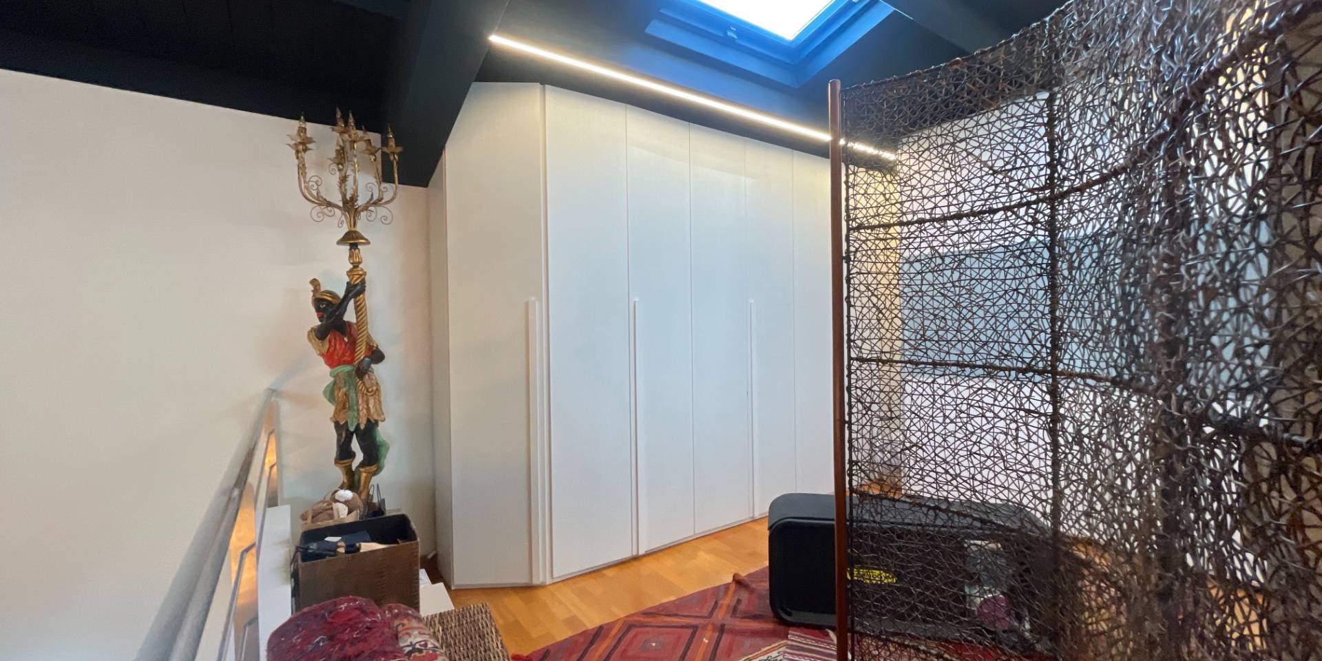 Il livello mansardato ospita due camere da letto, una matrimoniale ampia e una camera doppia, oltre a una zona soppalco con affaccio diretto sul salone sottostante, ideale come studio o spazio relax. Completa il piano un secondo bagno con doccia e bagno turco ed una terrazza privata di circa 20 mq, vera estensione della casa nella bella stagione, riservata e vivibile.