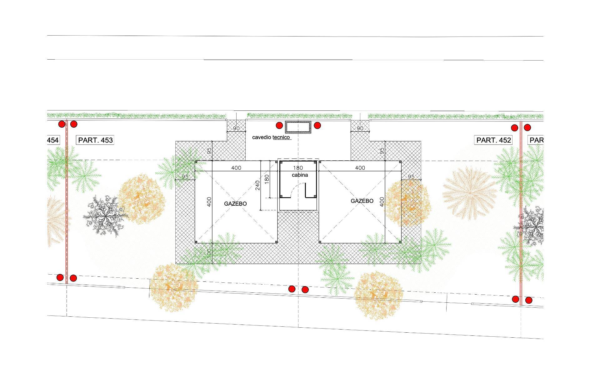 Sull'appezzamento di terreno in oggetto è possibile realizzare una cabina delle dimensioni di 1,80 x 1,80 metri oltre due gazebo ciascuno di 16 mq: totale superficie coperta sul lotto: 35,24 metri.