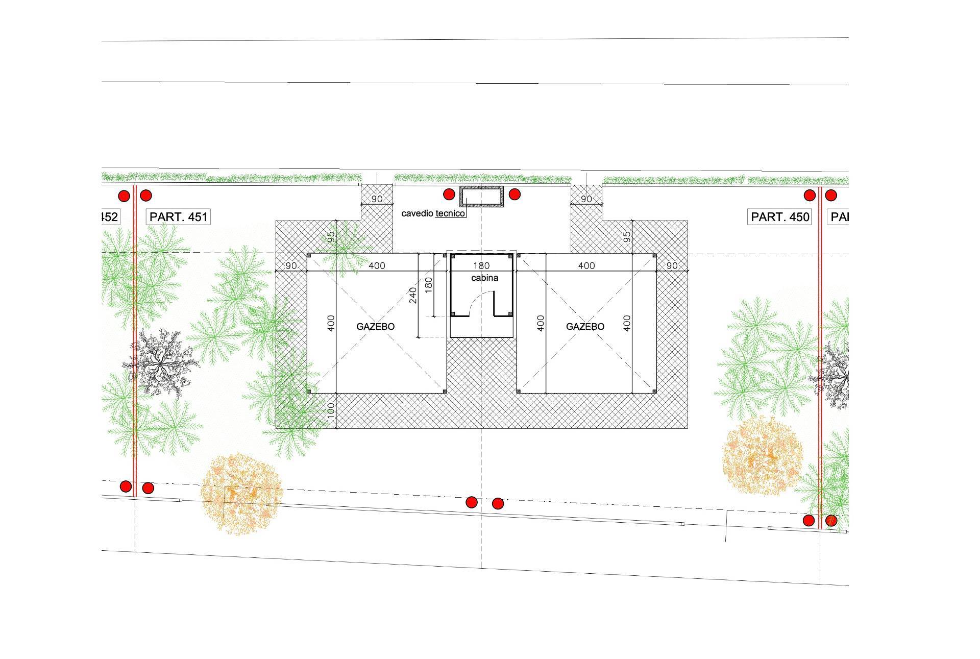 Sull'appezzamento di terreno in oggetto è possibile realizzare una cabina delle dimensioni di 1,80 x 1,80 metri oltre due gazebo ciascuno di 16 mq: totale superficie coperta sul lotto: 35,24 metri.