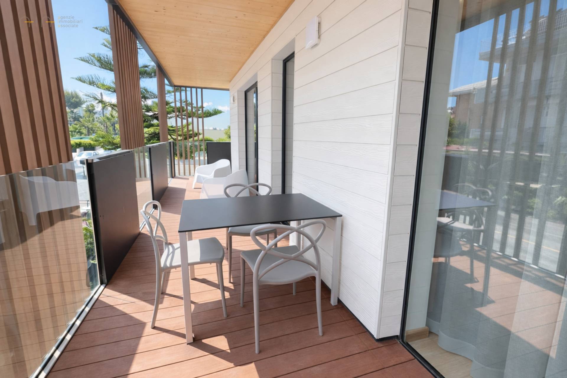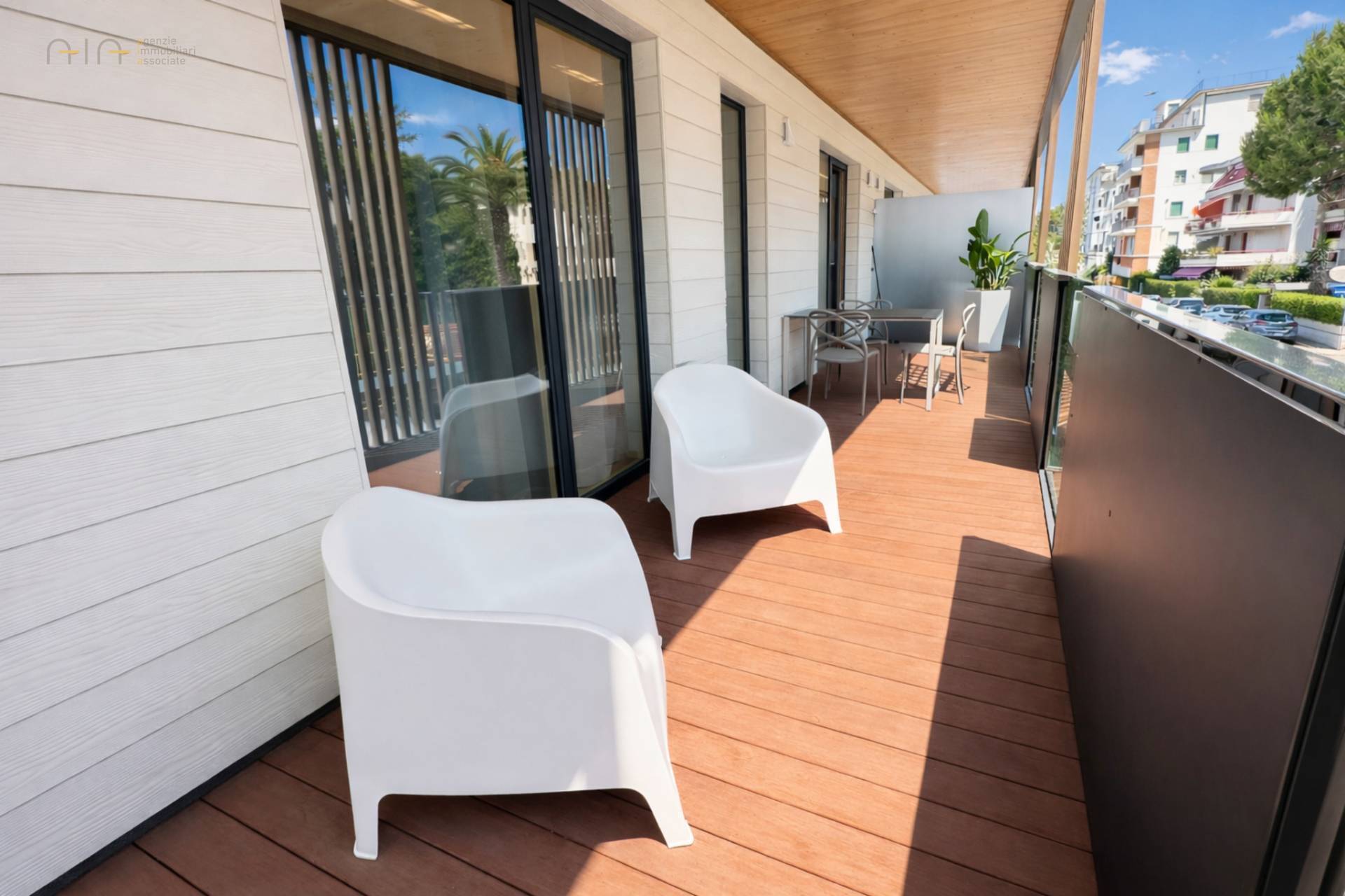 A pochi passi dal meraviglioso lungomare di San Benedetto del Tronto, sorge un moderno edificio residenziale progettato nel segno della sostenibilità ambientale e del comfort abitativo, realizzato secondo i più elevati standard energetici (Classe A4). Un progetto architettonico unico, caratterizzato da ampie vetrate, materiali certificati green e finiture di alta gamma, con isolamento termico e acustico di ultima generazione e domotica integrata per la gestione intelligente dei consumi. Proponiamo in Vendita un Appartamento al 2° piano estremamente luminoso di circa 53 mq interni con ampio terrazzo di 23 mq con pavimentazione in decking, ideale per vivere gli spazi esterni in ogni stagione. L'alloggio è composto da soggiorno con angolo cottura, camera da letto, cameretta/studio con letto a castello e bagno con doccia. Le rifiniture interne sono di pregio: pavimenti in parquet, infissi in legno interno e alluminio esterno con doppio vetro, impianto di riscaldamento e raffrescamento tramite termoconvettori alimentati da pompa di calore abbinata a fotovoltaico con accumulo condominiale. Ogni ambiente è inoltre dotato di impianto VMC per il ricircolo e la qualità dell'aria. L'alloggio viene venduto completamente arredato e corredato con mobili di qualità pronto per essere abitato fin da subito o per essere gestito nella locazione estiva. Disponibile con costo extra di € 30,000 un comodo posto auto coperto posto nel piano seminterrato