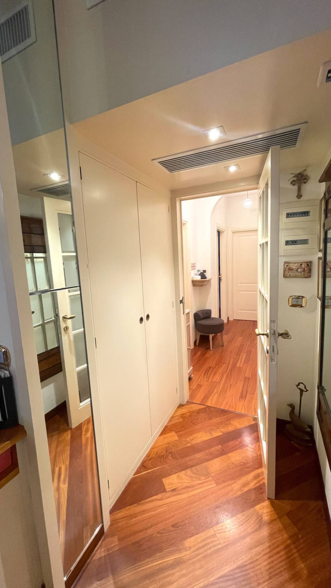 L'immobile si presenta in ottimo stato di conservazione, con parquet su tutta la superficie che dona calore ed eleganza, climatizzazione in ogni stanza, impianto di allarme, tende da sole elettriche, zanzariere e grate. Gli infissi sono in legno con vetro singolo.