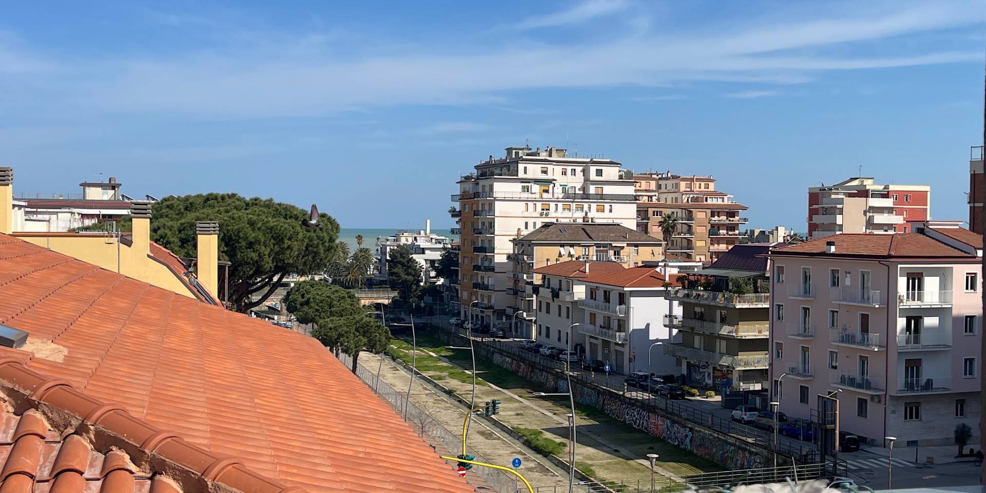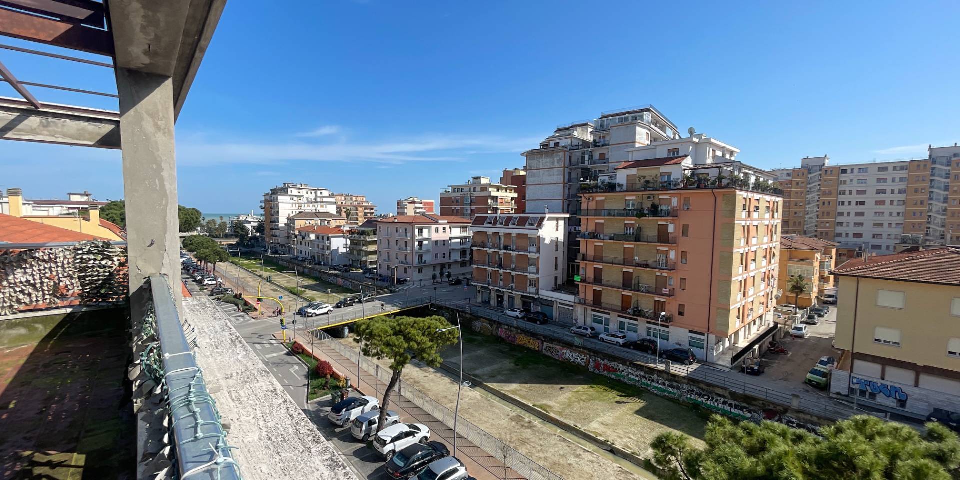 La posizione è particolarmente centrale, lungo il viale alberato con pista ciclabile che costeggia il torrente Albula, in un contesto comodo ai servizi e a breve distanza dal mare.
