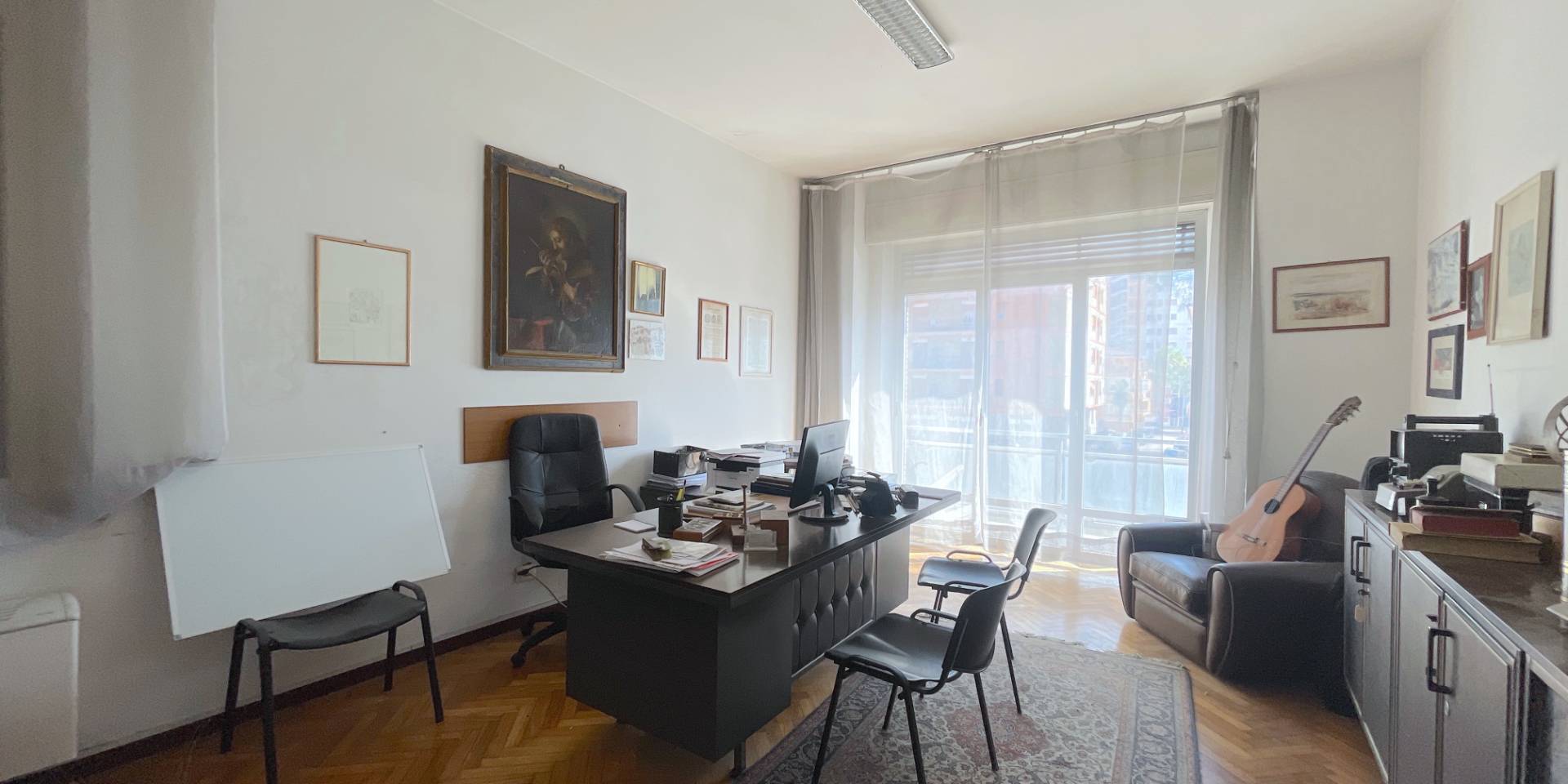 Il piano primo, di circa 110 mq oltre balconi, è attualmente destinato ad uso ufficio e si sviluppa su circa 95 mq, suddivisi in quattro vani operativi oltre corridoio e bagno.