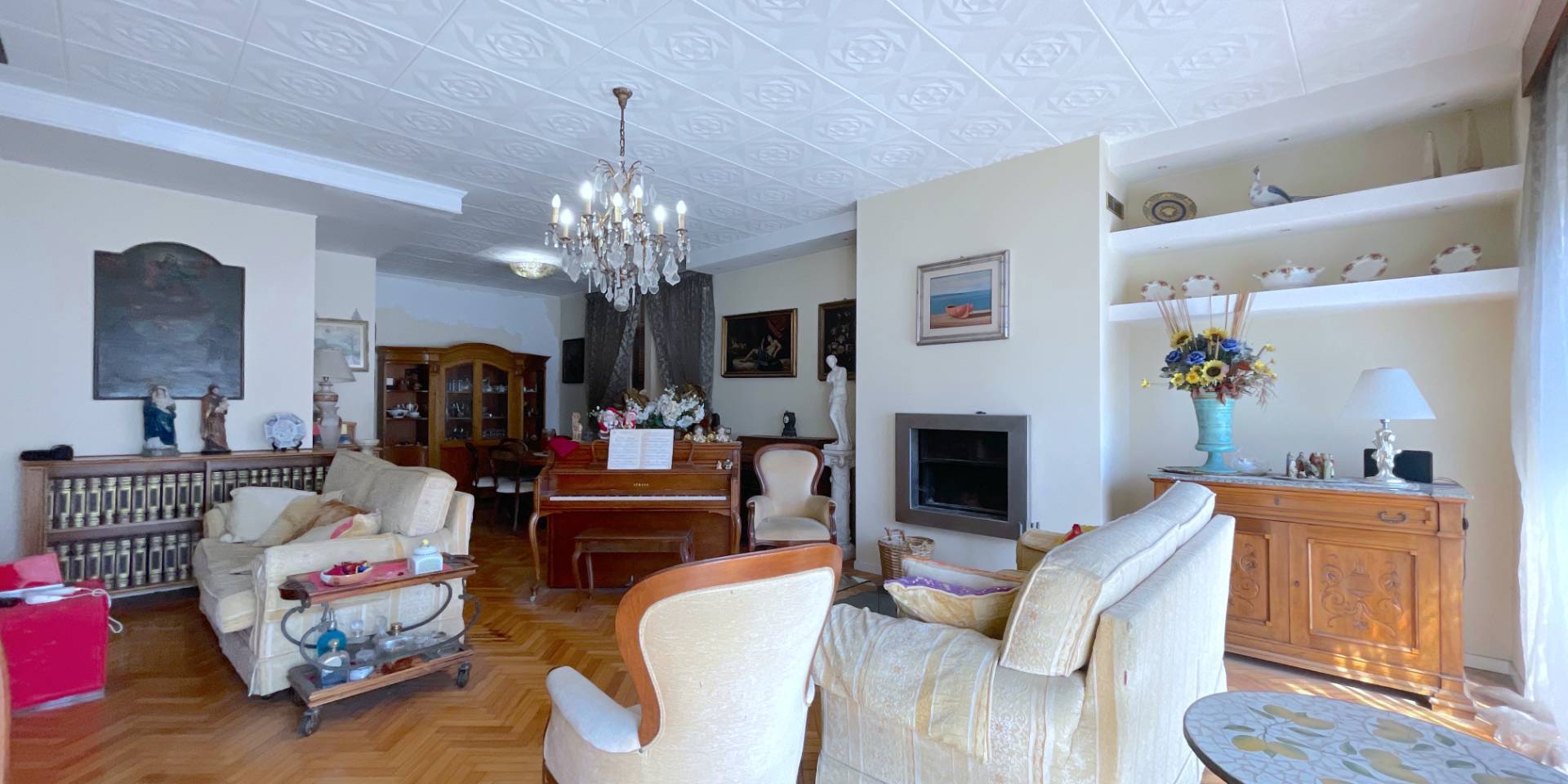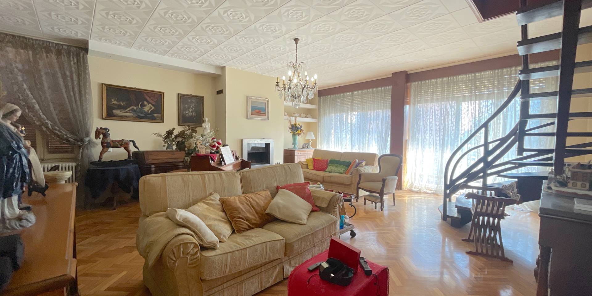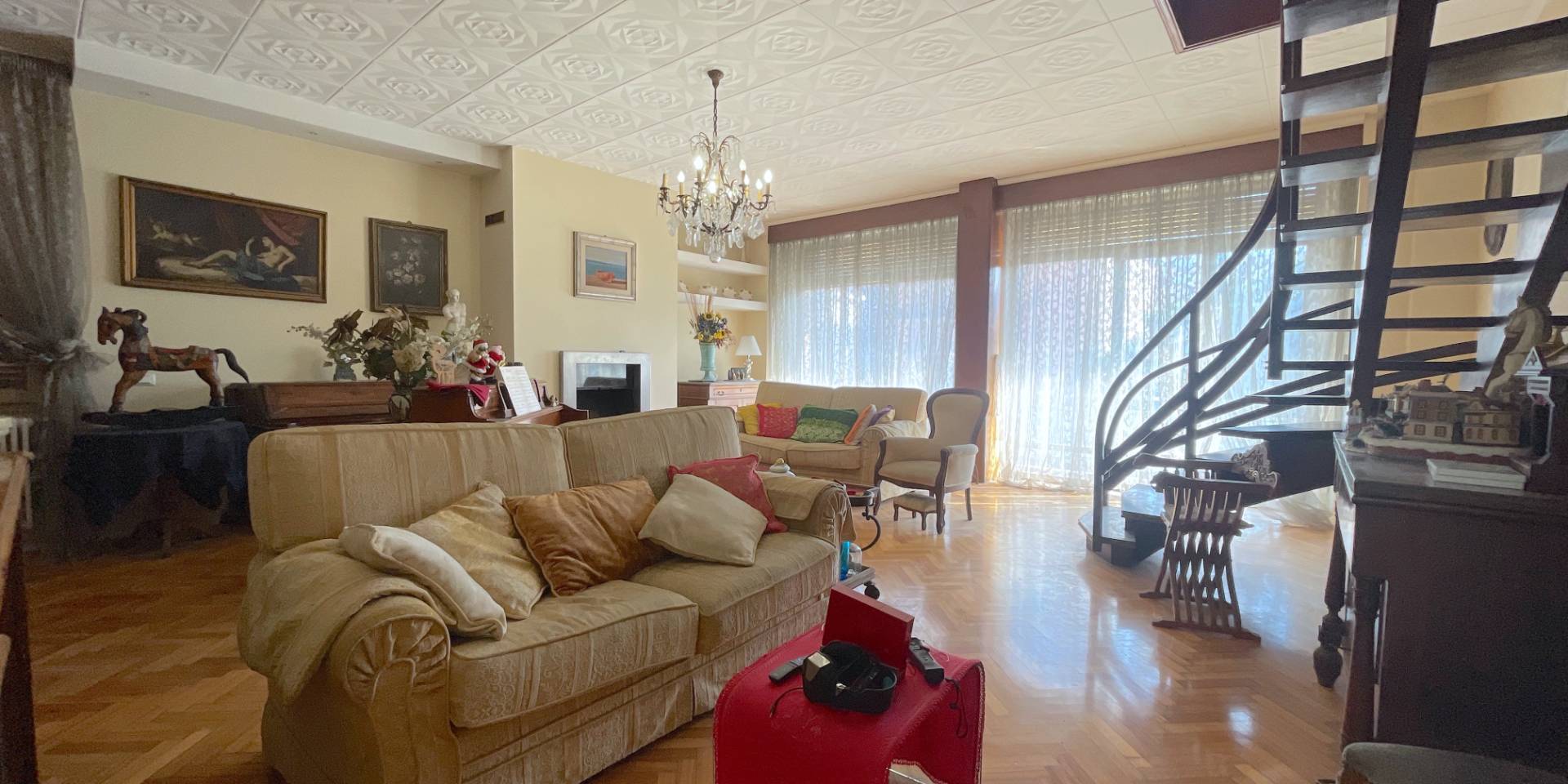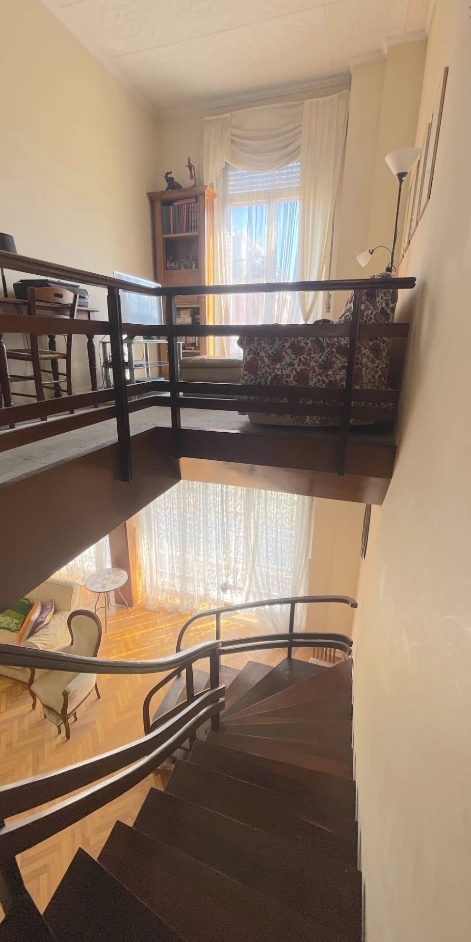 Il piano secondo, sempre di circa 110 mq oltre balconi, ospita un appartamento di circa 95 mq attualmente organizzato come reparto giorno, con ambienti ampi e luminosi; questo livello è inoltre collegato internamente al piano superiore tramite una scala privata.