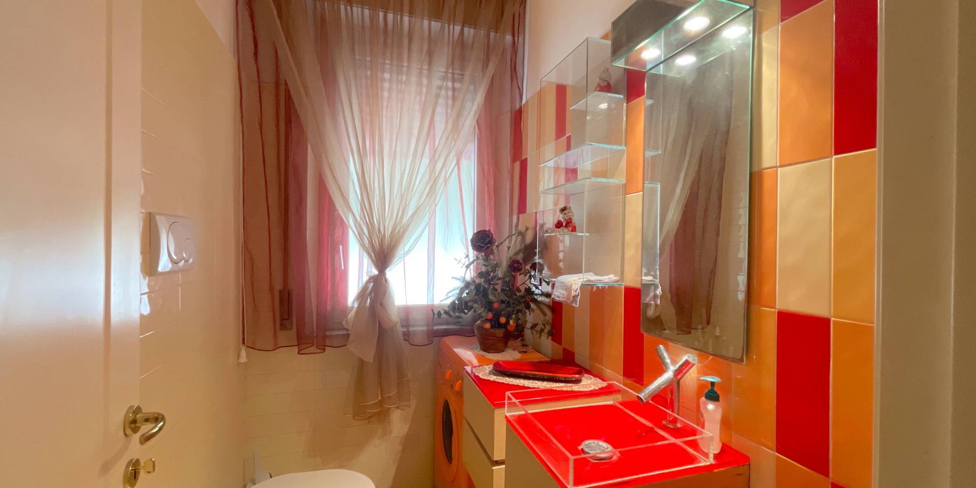 Il piano terra, anch'esso di circa 110 mq, comprende un locale commerciale di circa 72 mq con vetrina fronte strada e bagno di servizio, oltre all'ingresso condominiale con vano scala e ascensore che collegano i livelli superiori.