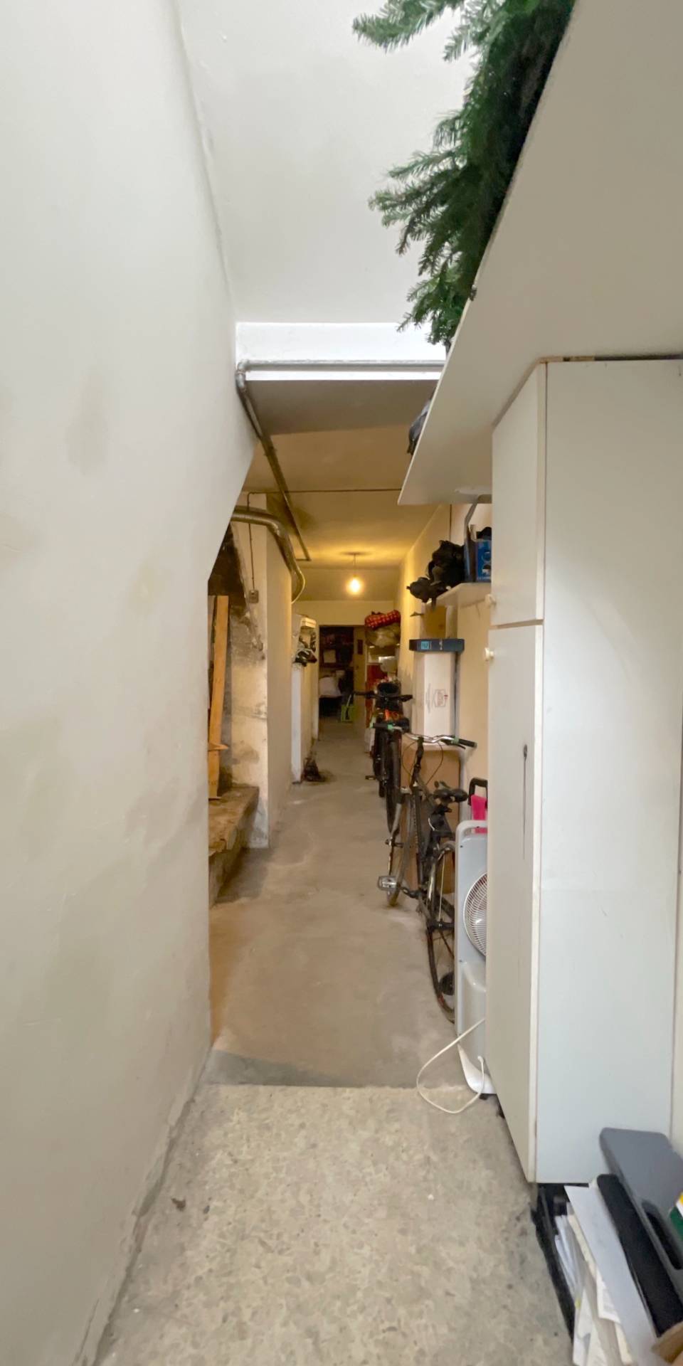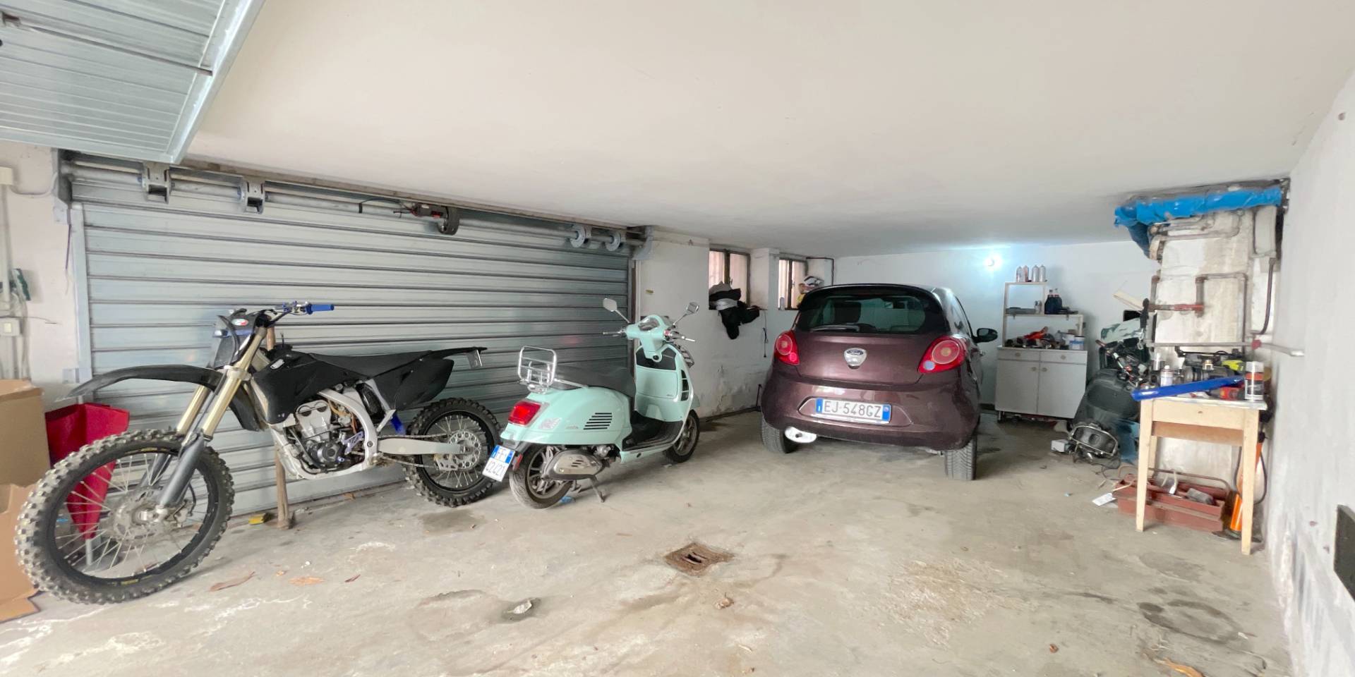 Il piano seminterrato, di circa 110 mq, ospita diversi locali cantina, i vani tecnici e un ampio garage in grado di accogliere comodamente due autovetture, con accesso carrabile dalla parte posteriore del fabbricato, particolarmente pratico e agevole.