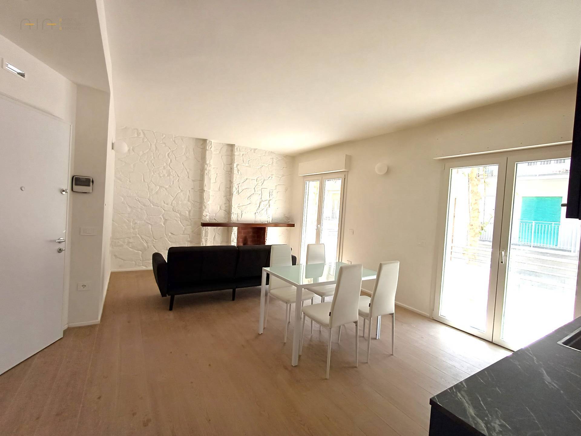 San Benedetto del Tronto - Viale De Gasperi in piccola palazzina restaurata proponiamo in Affitto un Appartamento completamente ristrutturato pari al nuovo composto da ingresso su un ampio e luminoso soggiorno con cucina a vista, una camera da letto matrimoniale, un bagno con doccia e un ampio balcone dove è possibile soggiornare. Parcheggio bici all'interno della corte condominiale. Arredato con mobili nuovi e dotato di ogni comfort, l'Appartamento ha l'impianto di climatizzazione autonomo caldo/freddo. La sua ottima posizione permette di raggiungere a piedi tutti i servizi ed il mare. Ideale per single o giovani coppie in cerca di una soluzione moderna e accogliente.