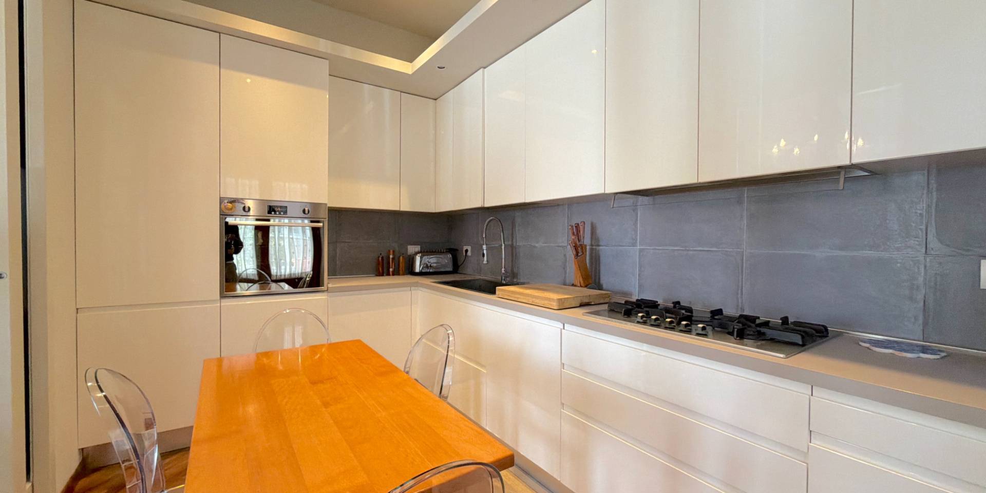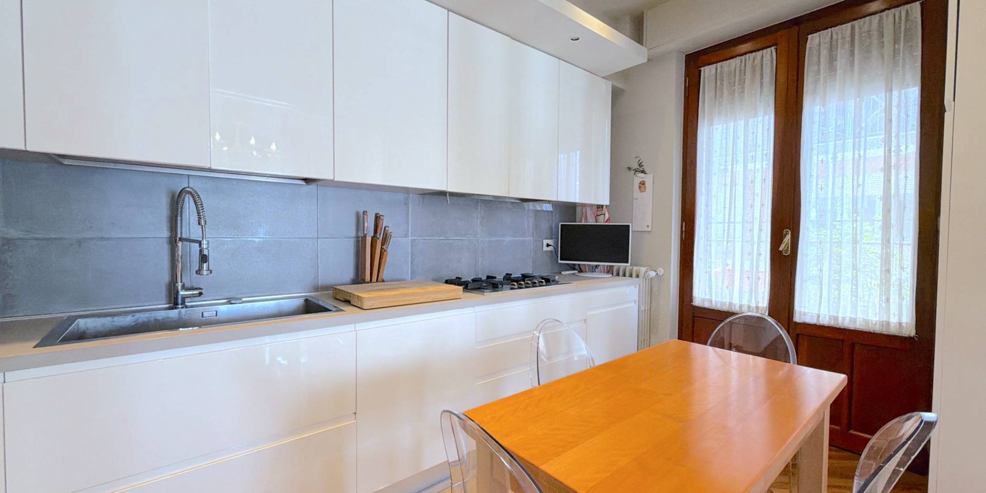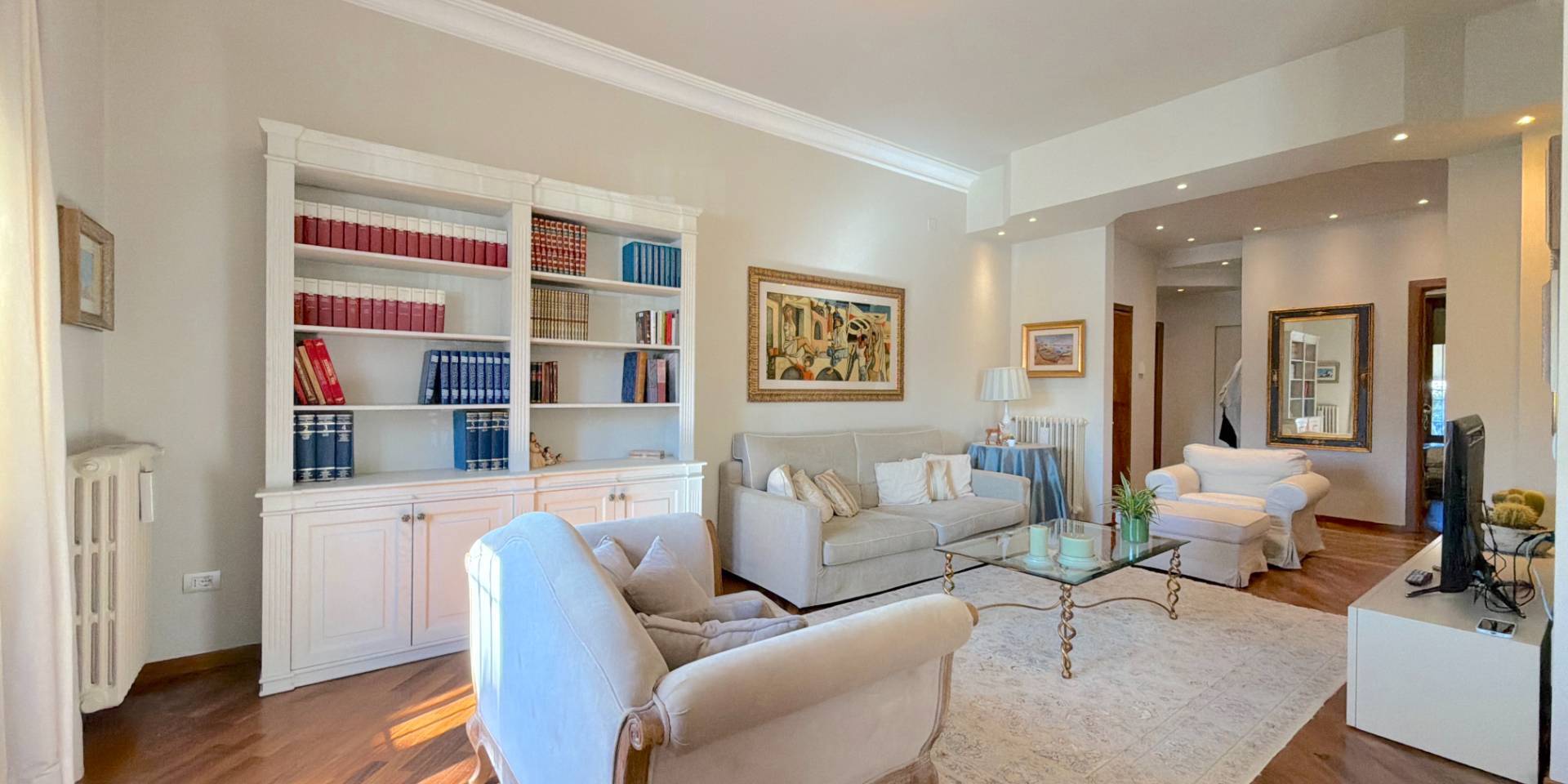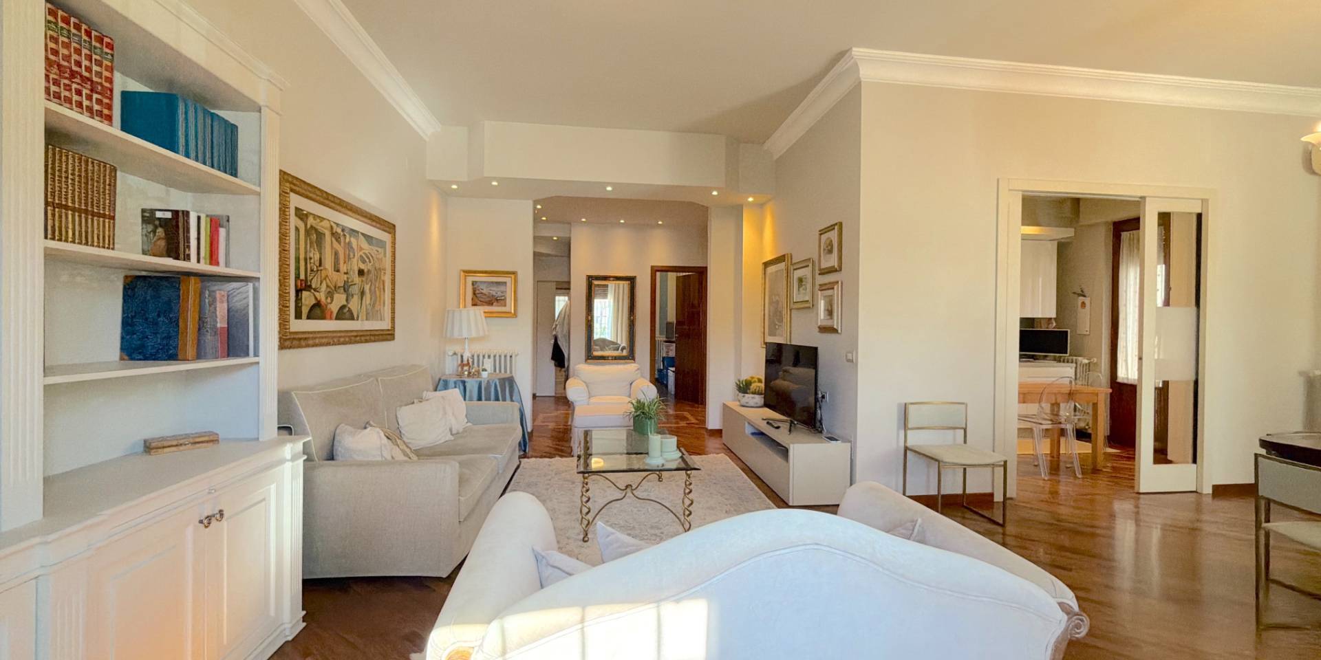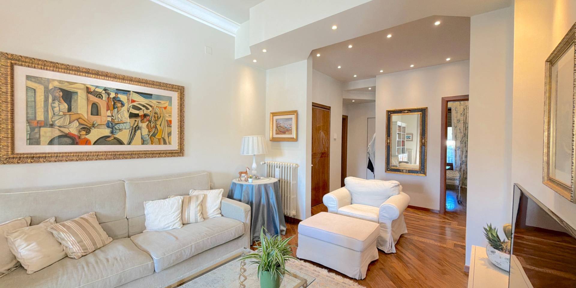 La casa è pronta, senza lavori da mettere in conto: parquet in legno naturale, impianti a norma, climatizzazione in ogni stanza, porte di qualità e bagni rifatti. Una ristrutturazione completa, in stile classico, fatta con criterio e mantenuta in condizioni impeccabili.