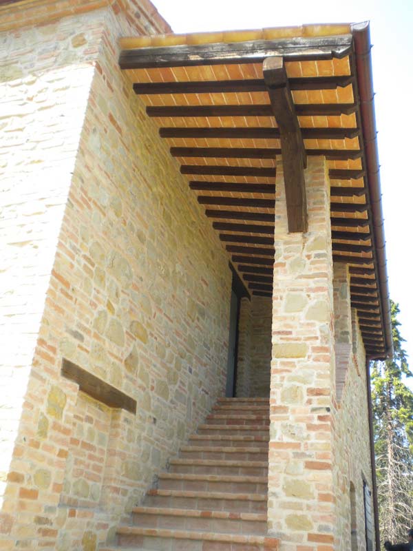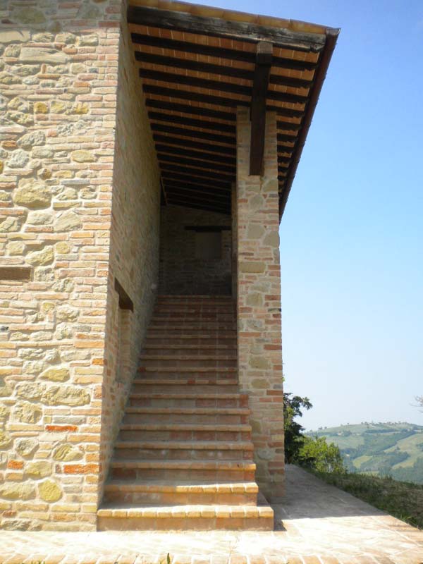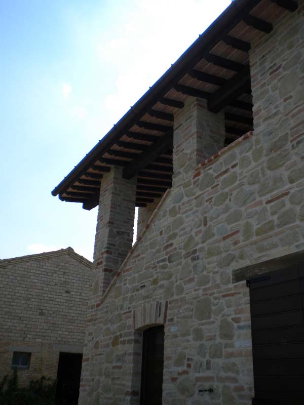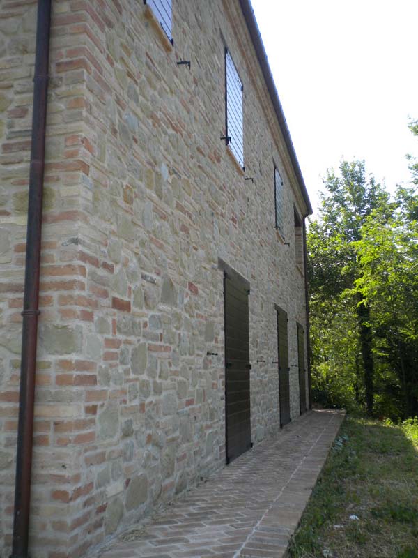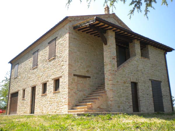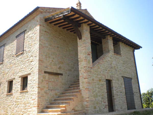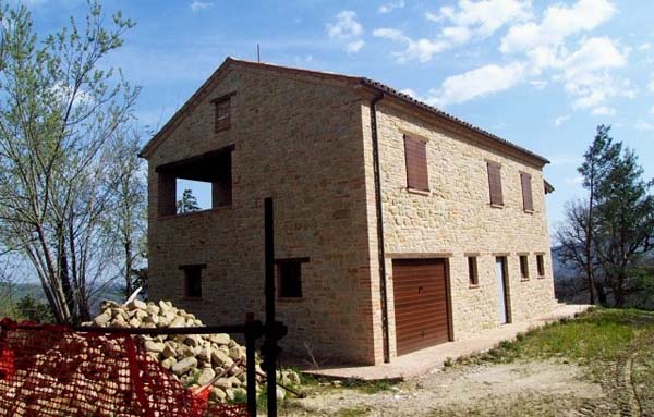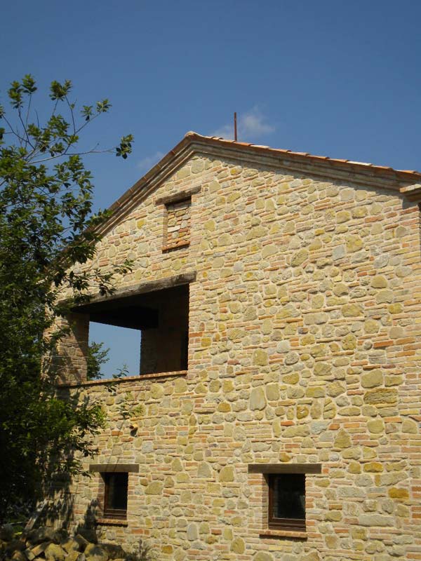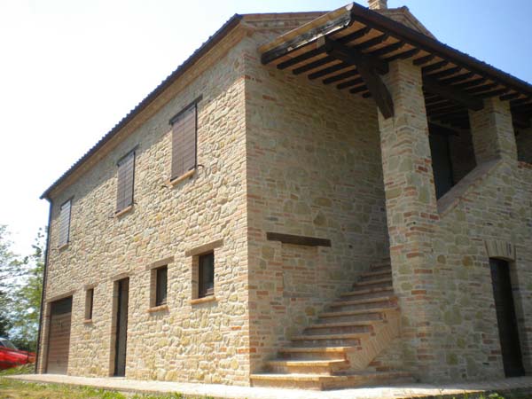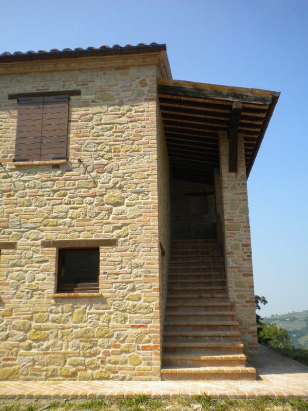 La villa completamente ristrutturata, esternamente a pietra e mattoni come nella tradizione marchigiana, ed internamente ancora al grezzo, permette di realizzare l'abitazione secondo la necessità dell'acquirente. Infatti sono stati svilupparti due progetti guida per la realizzazione di differenti soluzioni.