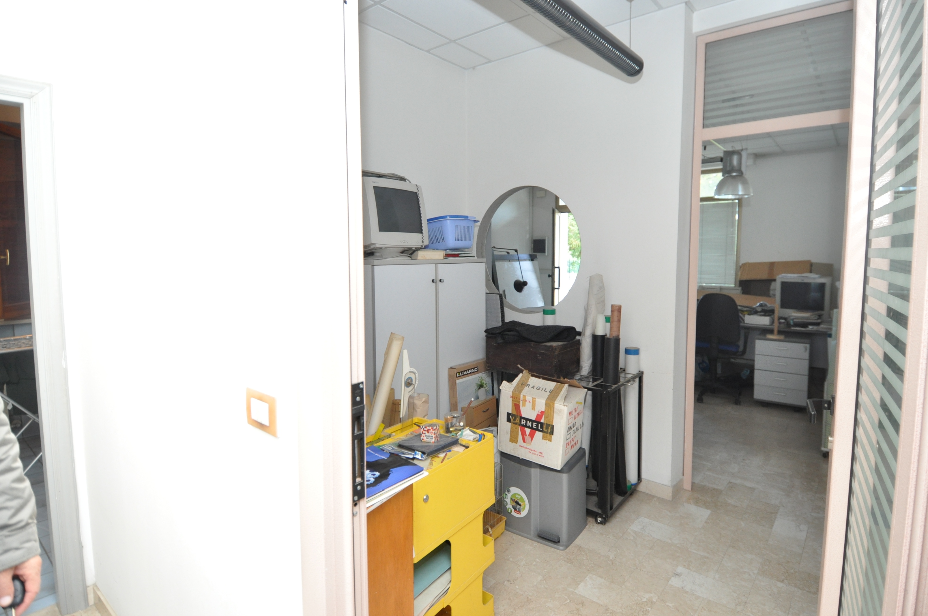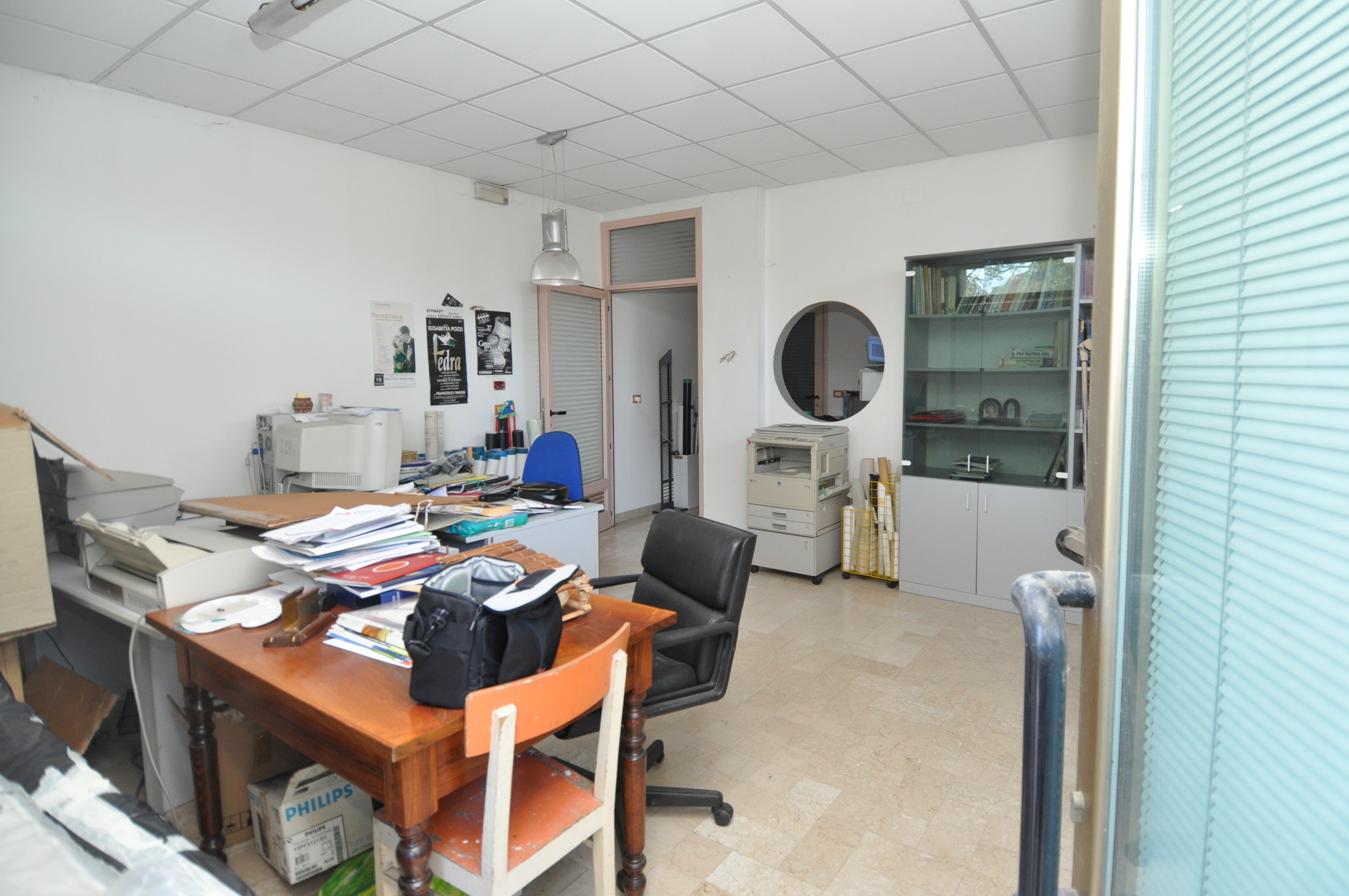 Intero fabbricato indipendente con varie destinazioni, di complessivi 770 mq ca, sviluppato su quattro livelli e composto da: piano terra con una parte adibita ad ufficio di 190 mq ca con tre vani e un bagno, e una parte a laboratorio artigianale, composto da unico vano di mq 230 ca, dotato di ingresso autonomo e scala di accesso al piano sottostrada, dove è posto un fondaco di 50 mq ca, scala di accesso ai due piani superiori, rispettivamente di 150 mq ca ognuno, allo stato grezzo da adibire ad appartamenti. Completa la proprietà una corte privata circostante di mq 1400 ca. Localizzato nelle immediate vicinanze dell'uscita della superstrada, in posizione ad alta visibilità su strada con intenso traffico veicolare.