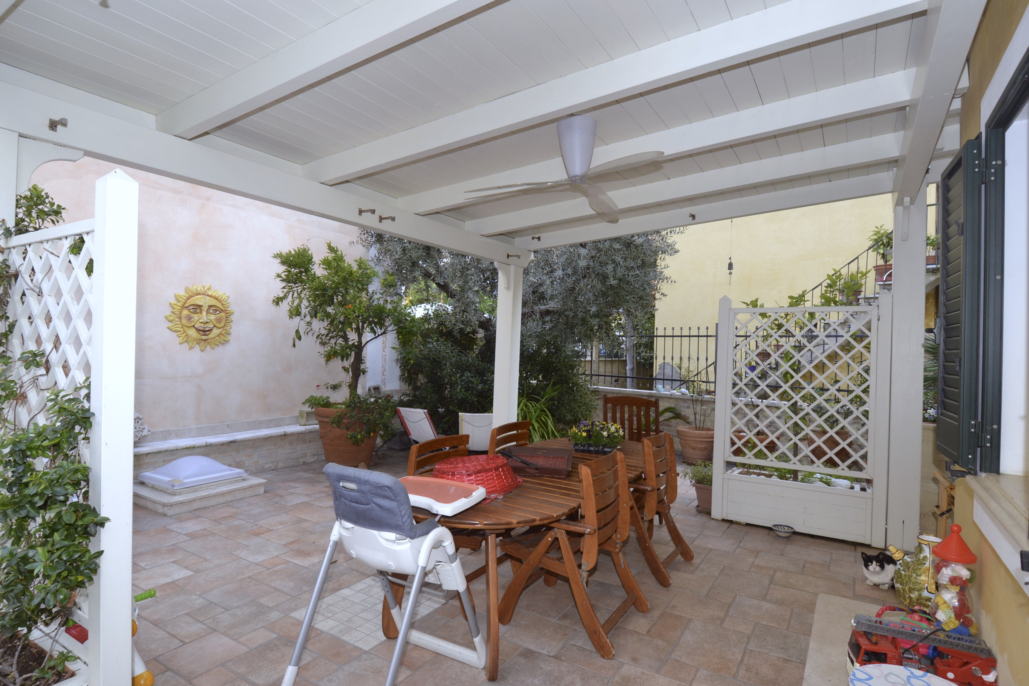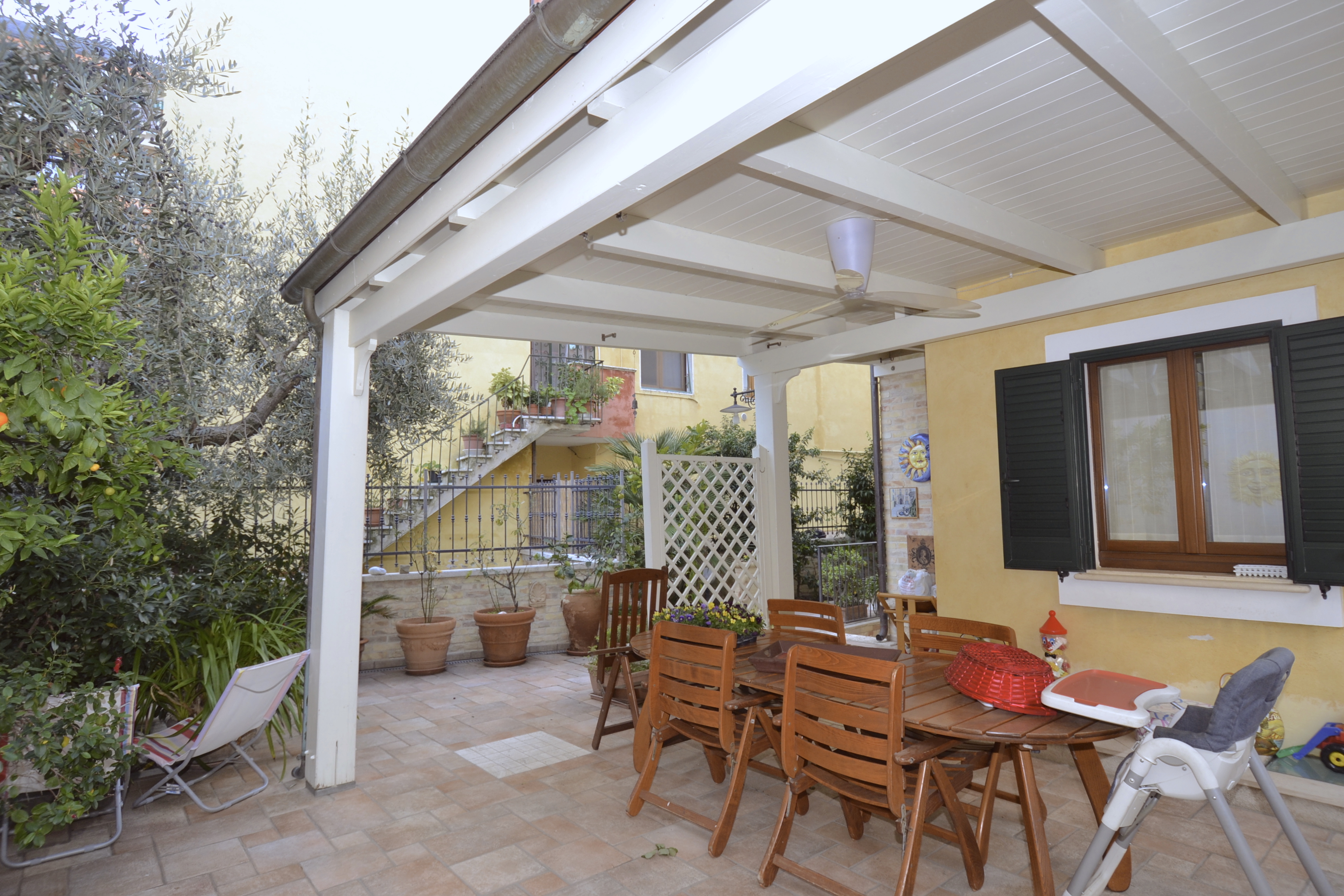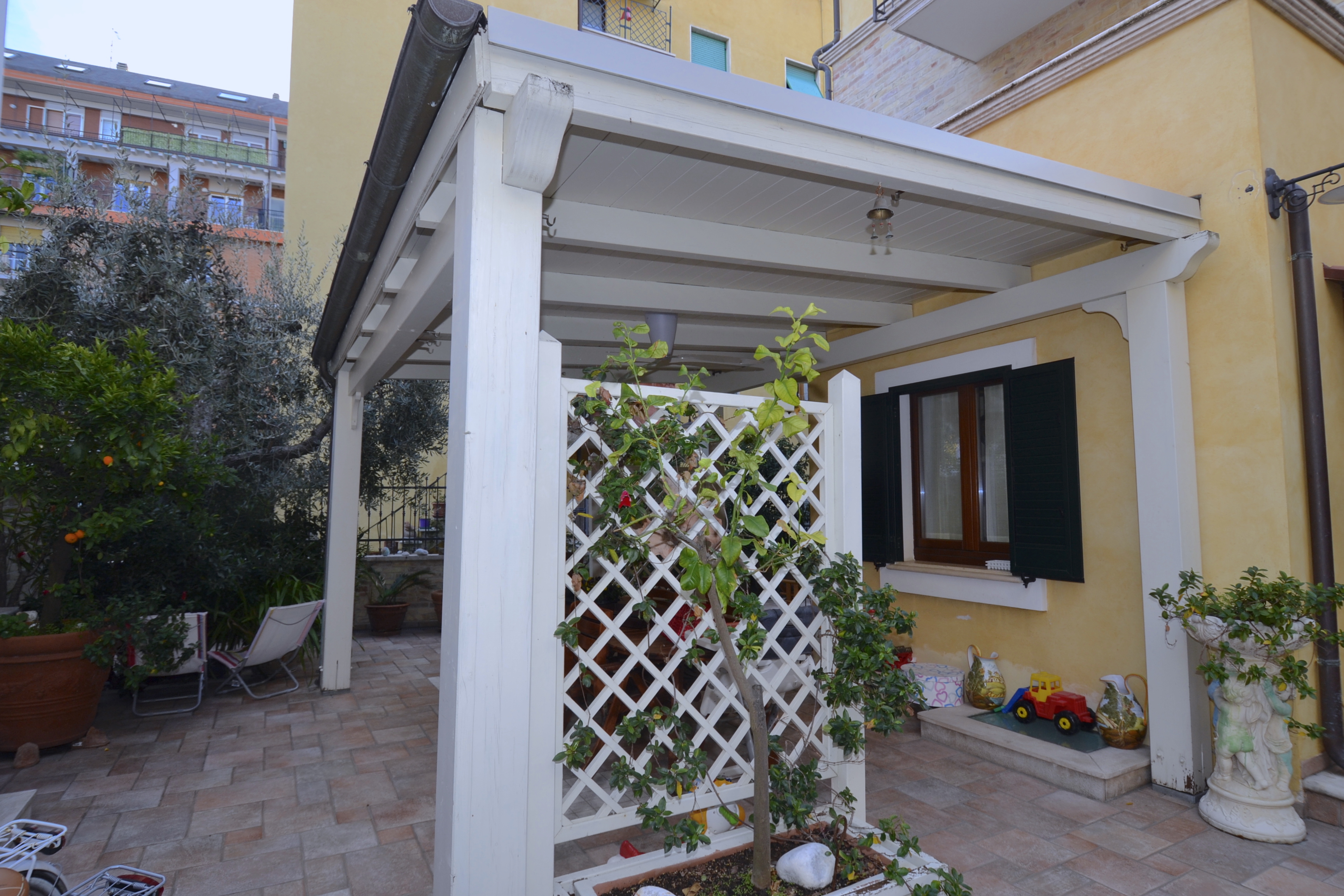Il villino inoltre fornito di una corte - giardino privata circostante l'intera abitazione delle dimensioni di 255 mq circa, ove sono presenti ben due posti auto scoperti. Nella parte posteriore della corte é stato - inoltre - ricavato un elegante pergolato in legno, ideale per soggiornarvi nella bella stagione.