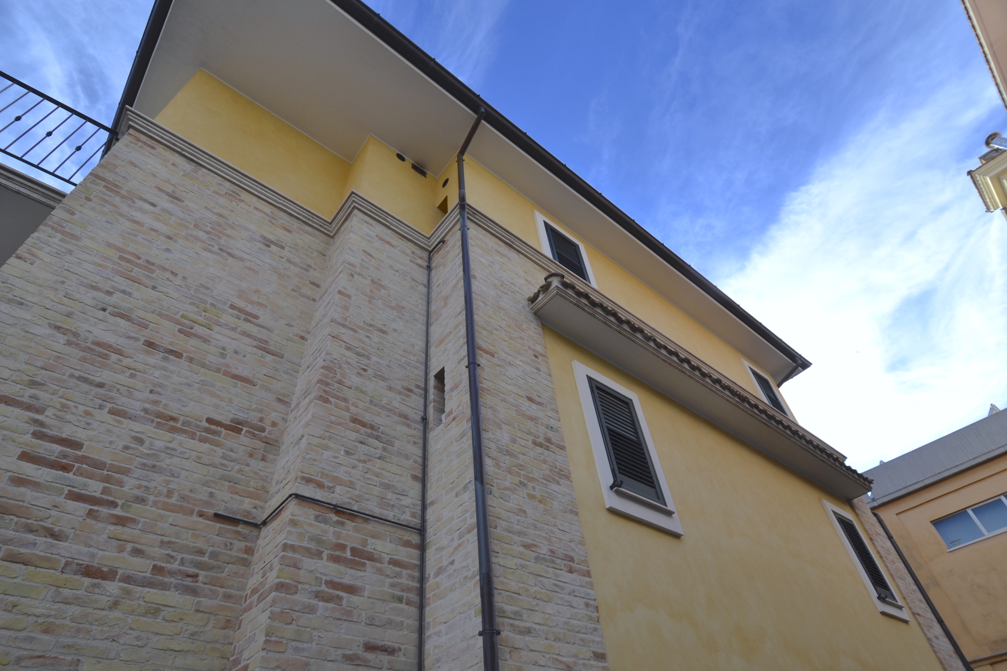 Esternamente il villino si presenta in stile classico, con finitura in mattoncino antico, particolari in travertino e facciate in intonaco antico, oltre recinzioni in ferro battuto.