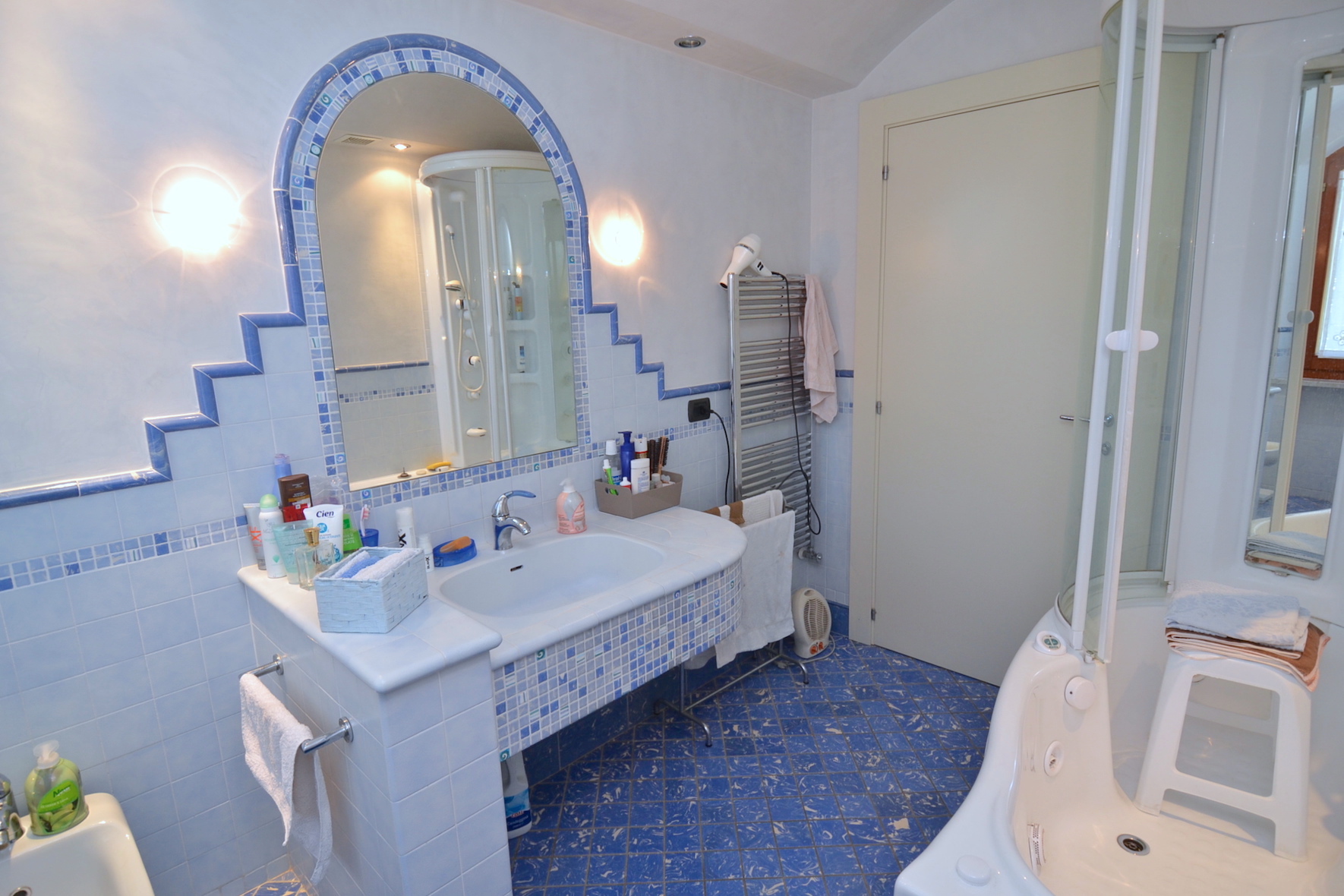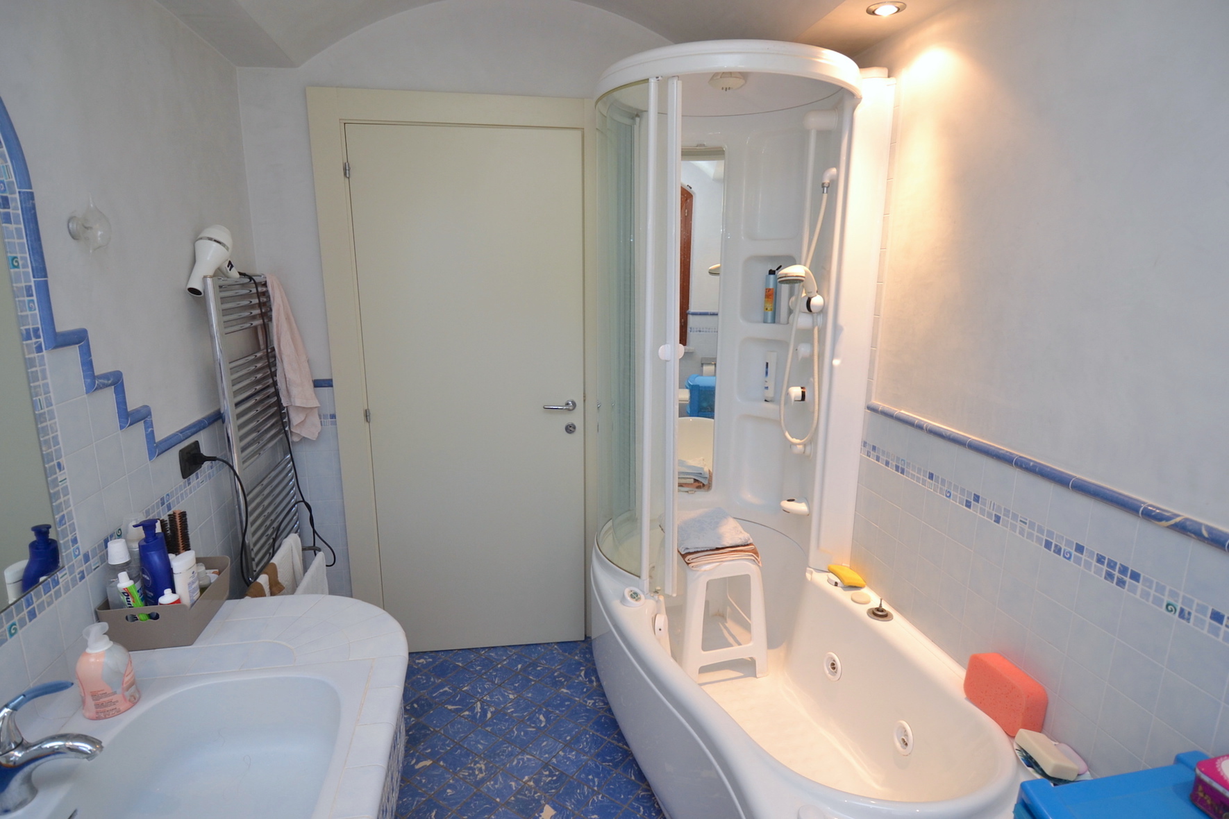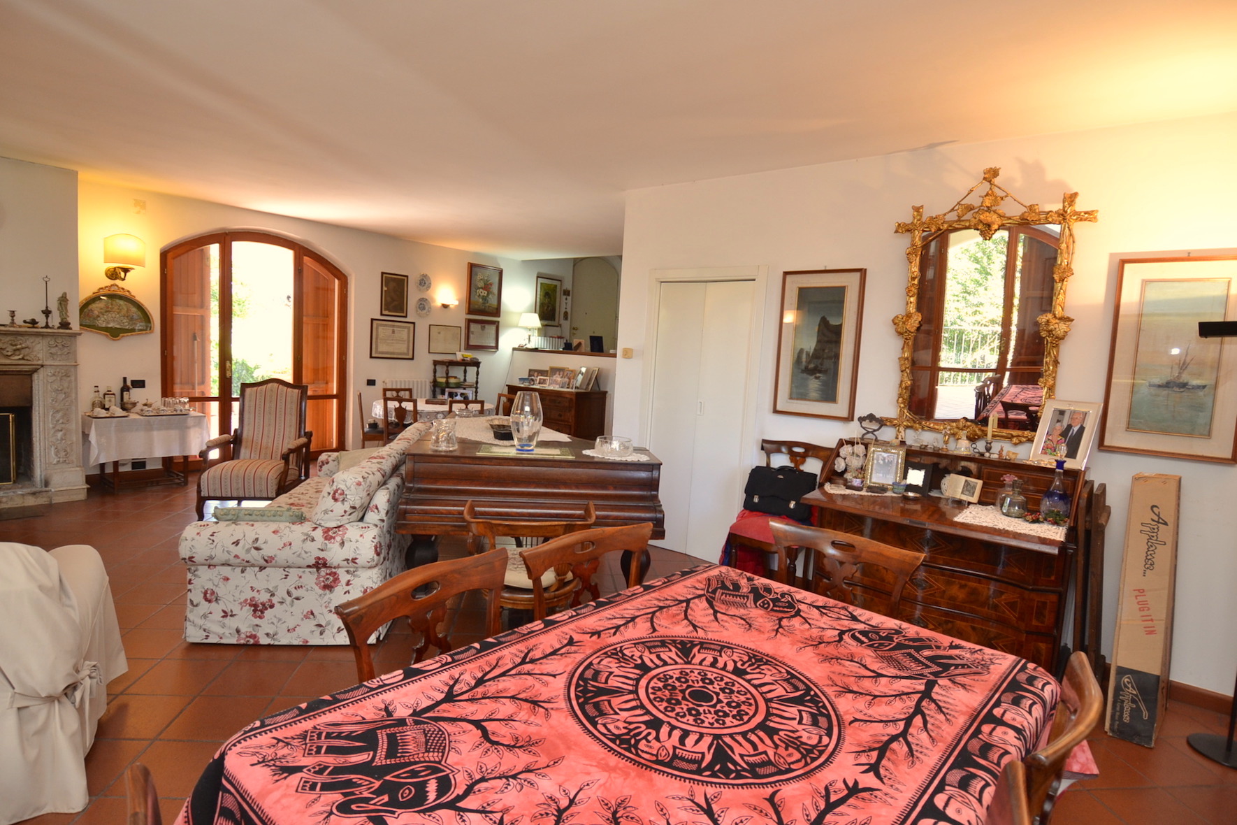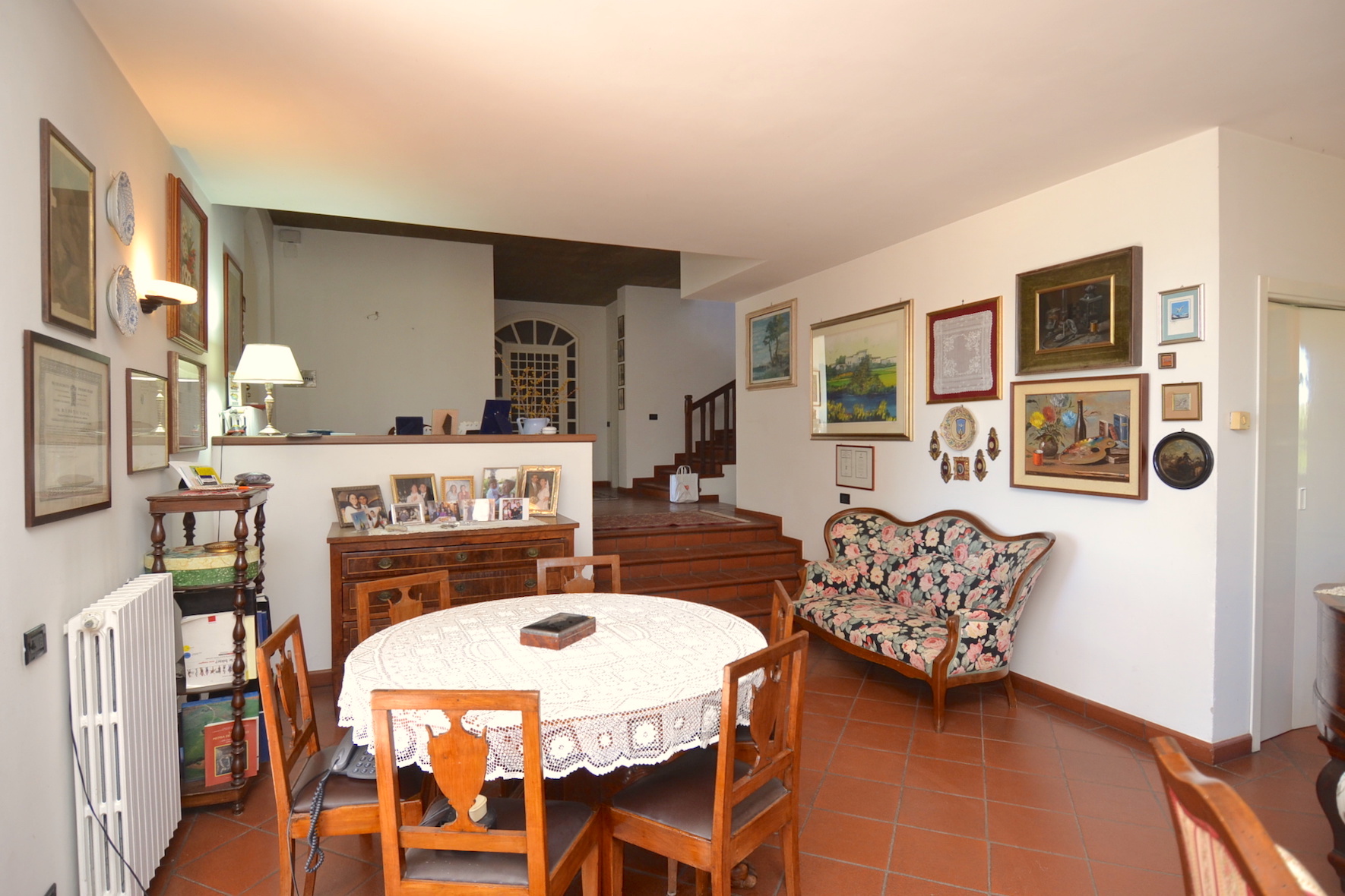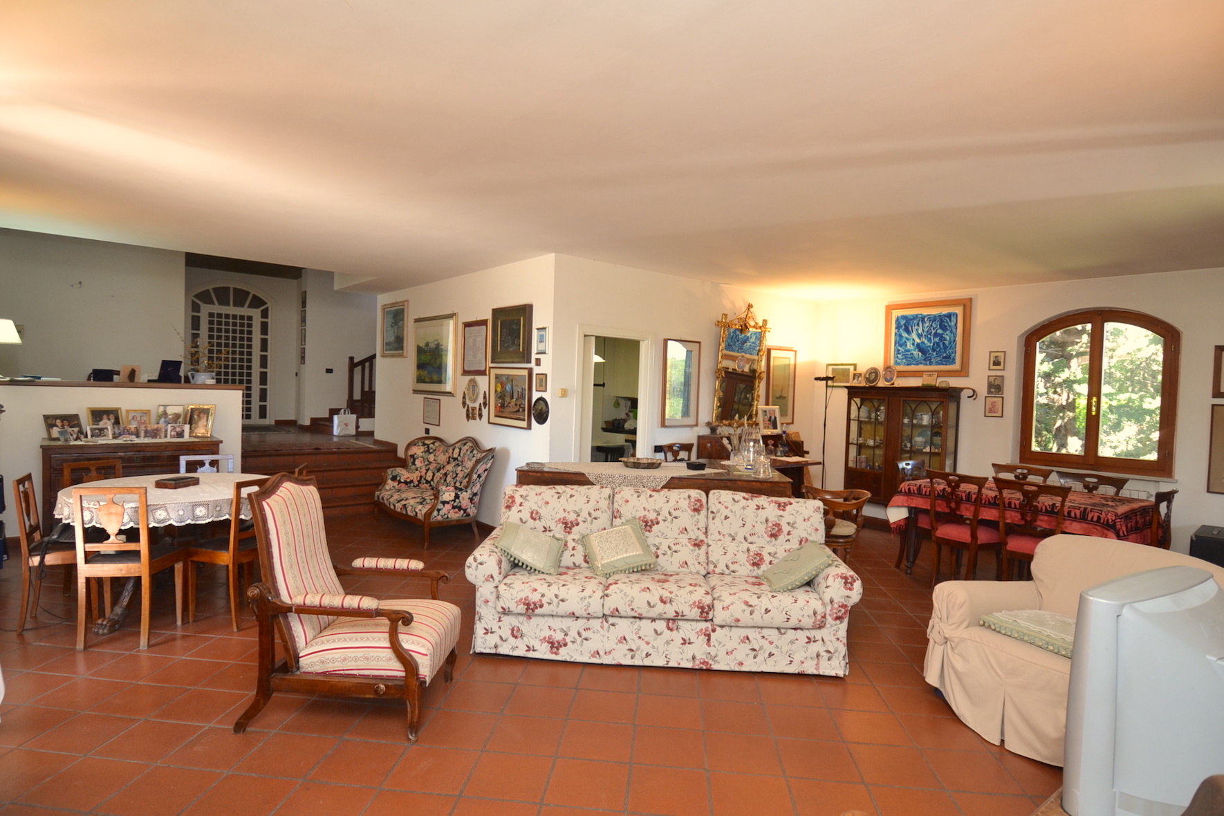 - piano terreno di 215 m² circa, completo di ingresso, ampio salone salotto, grande cucina abitabile, tre camere da letto matrimoniali e due bagni, oltre scala di accesso ai piani superiori. Il piano terreno è fornito di un porticato esterno per soggiornare nella bella stagione.