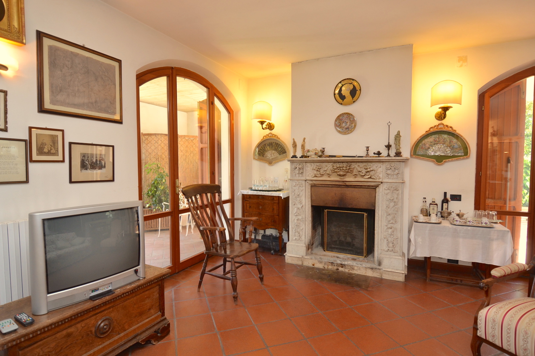 La residenza si presenta in buone condizioni, come pavimentazione in cotto e parquet, infissi con doppio vetro, impiantistica a norma. Ideale anche per due nuclei familiari, inserita in un tranquillo contesto residenziale di campagna, con vista panoramica e comoda strada di accesso asfaltata.
