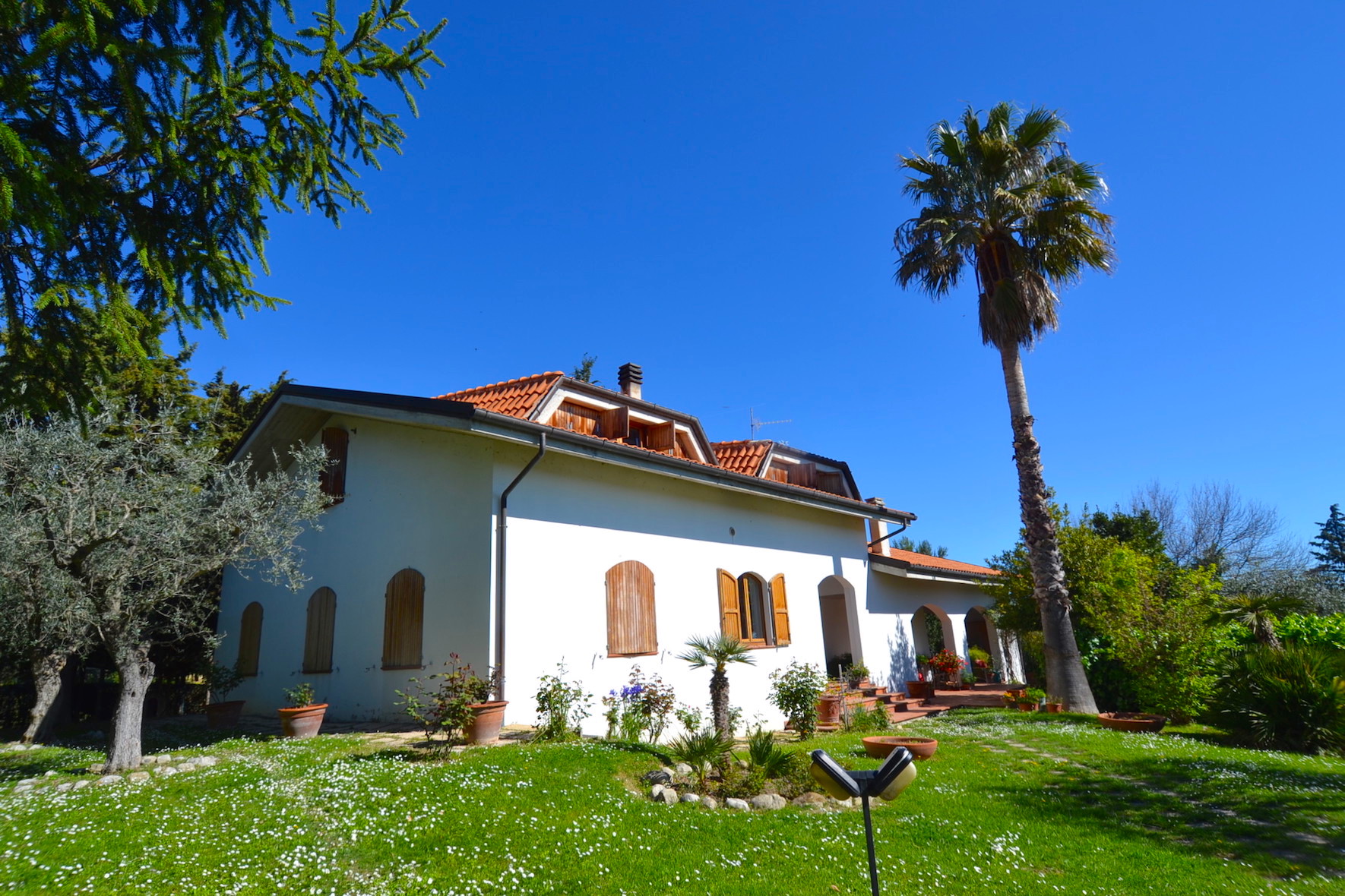 La villa é inoltre circondata da un parco giardino di ben 4500 mq, recintato e con piante anche ad alto fusto.