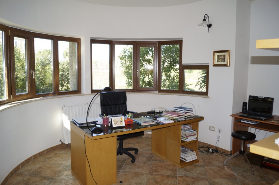 Villa prestigiosa di mq 230 dislocata su un unico livello e composta da ampio salone, cucina abitabile di grandi dimensioni, tre camere da letto, uno studio, una saletta per la musica e due bagni. L'immobile dispone di un piano sottostante di 500 mq. circa, con garage per diverse autovetture, locali cantina, taverna, un appartamento allo stato grezzo con un'ampia zona giorno, una camera da letto matrimoniale e bagno; Completa la proprietà un ampio giardino / parco delle dimensioni di oltre 4000 mq., arricchito con piante ornamentali, da frutto, uliveto di oltre 70 piante, piccola rimessa attrezzi da giardinaggio, due forni e casetta per gli animali. Un ampia zona lastricata intorno alla casa di 650 metri circa agevola la manovra ed il parcheggio per diverse auto. Con prezzo da computare separatamente è possibile acquistare un terreno agricolo di mq 18000 con pozzo per l'irrigazione.