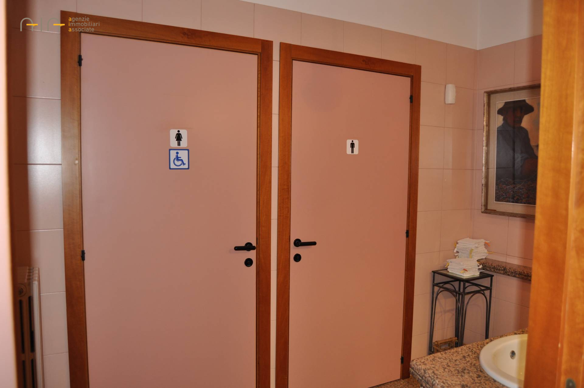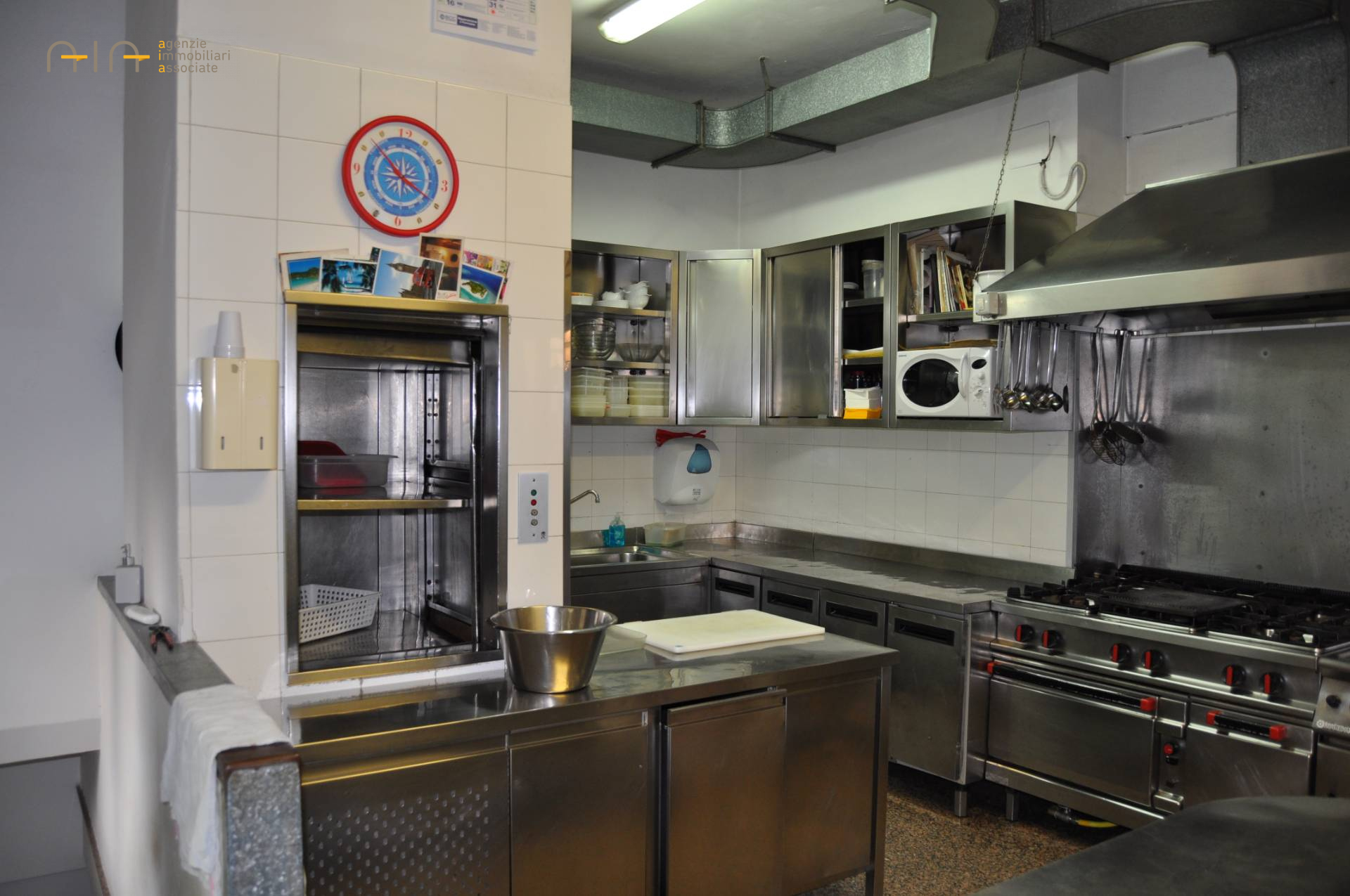 Al Piano terra sono presenti i servizi igienici ad uso della clientela e la cucina mentre al piano primo sottostrada sono ubicati, il deposito alimenti, il locale per la pulizia e lavaggio del pesce, oltre ai servizi igienici e spogliatoi per dipendenti. Oltre alla scala interna per il collegamento tra i due livelli, il locale e' provvisto di un vano montavivande.