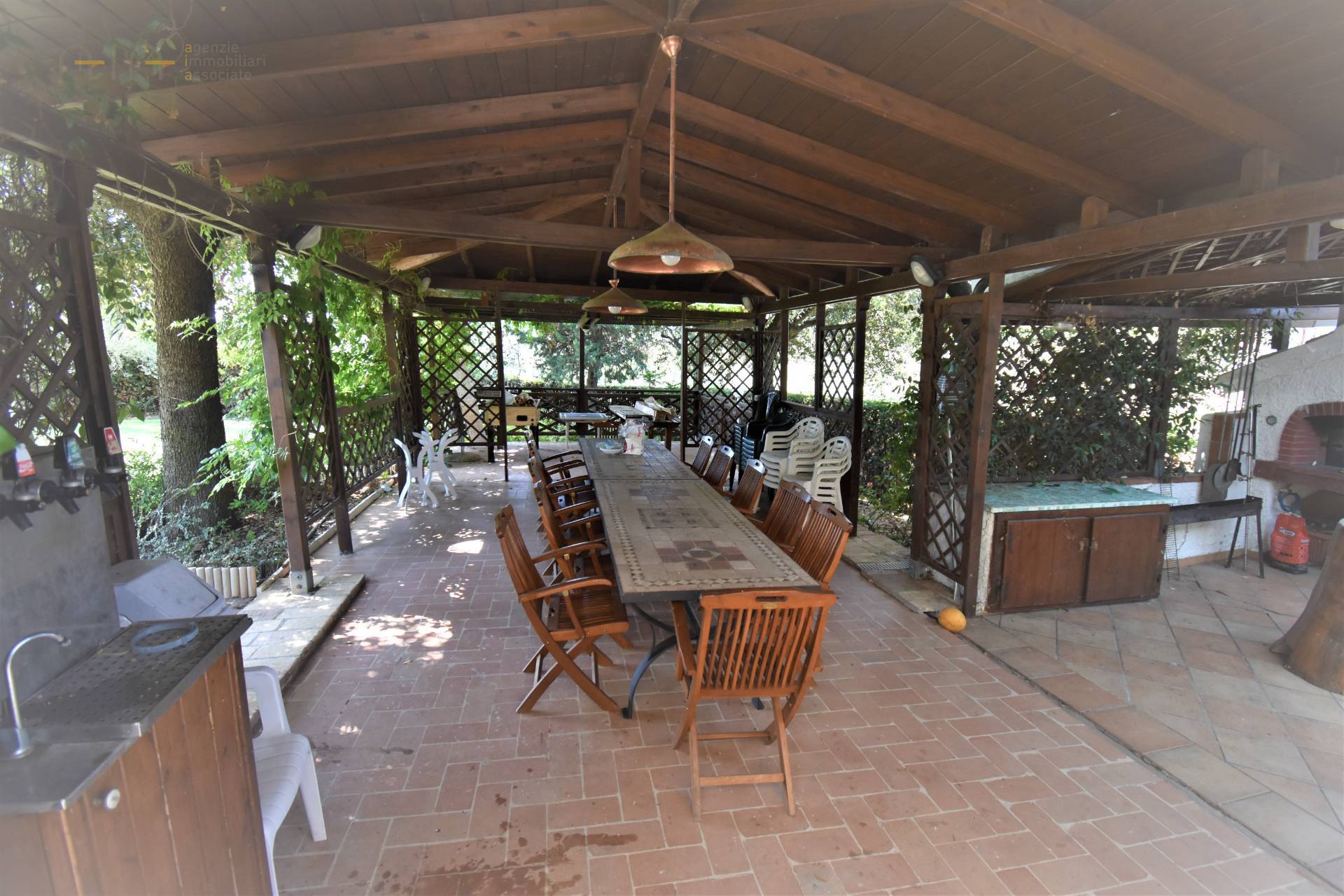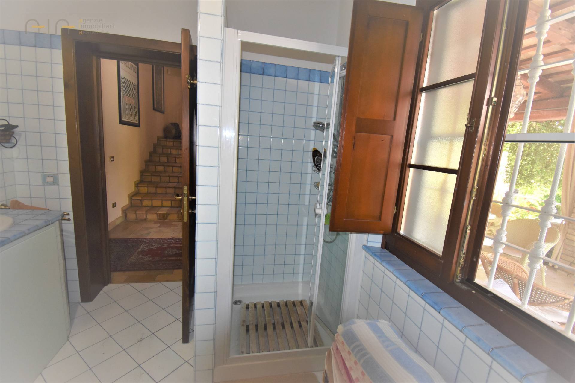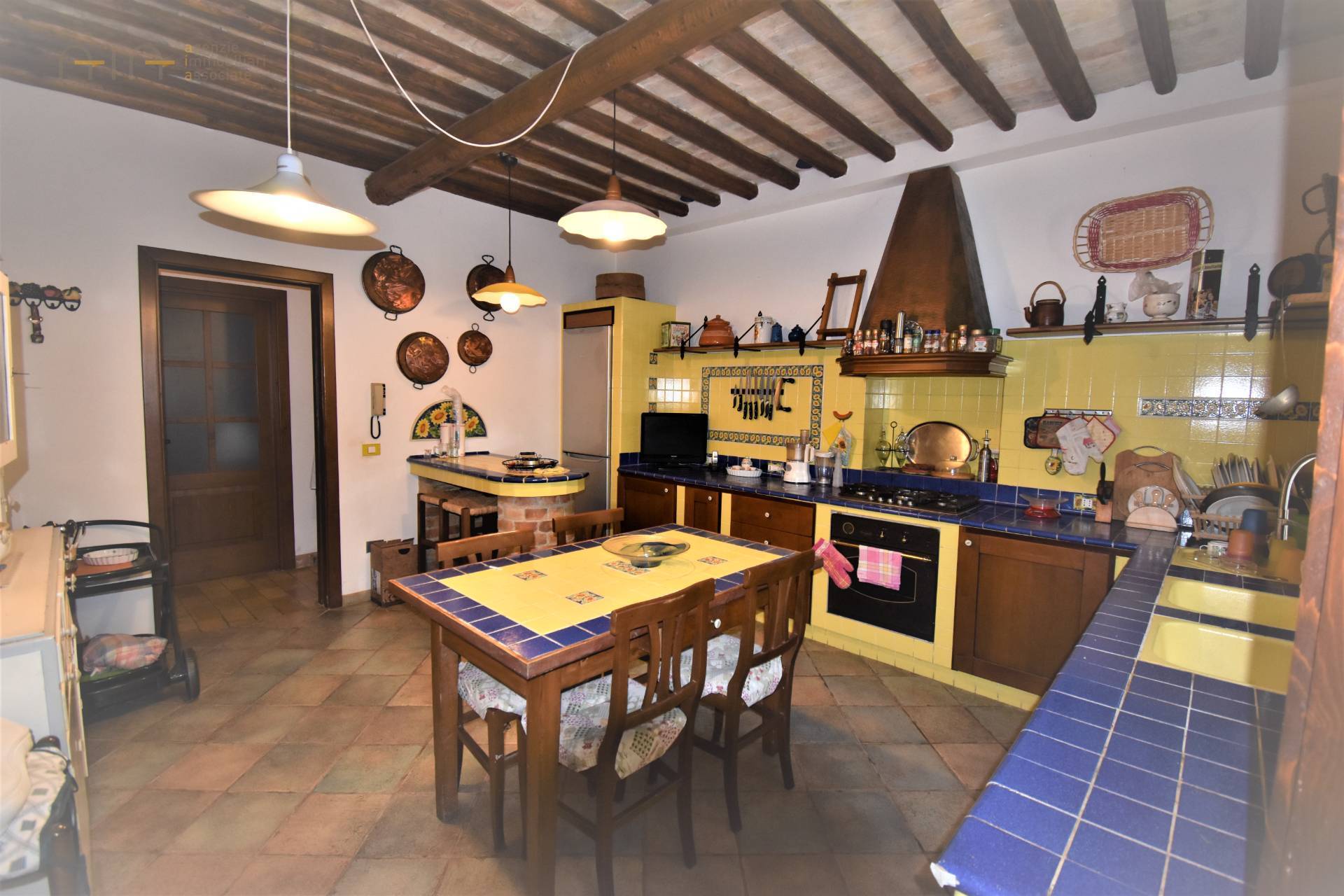 Il terreno circostante che contiene anche un ampio parcheggio è doppiamente recintato con doppi cancelli. A ovest del casolare ci sono due gazebi con forno e barbeque e un pergolato; a sud del casolare nel 2006 è stata realizzata la piscina con cascata della dimensione di 12 metri x 6 con una doppia vasca di contenimento di 15 metri x 1,40. Impianto di allarme, impianto fotovoltaico e solare termico per l'alimentazione di due caldaie, una per piano; infissi in legno con doppio vetro taglio termico, scuri all'interno, zanzariere e inferriate dappertutto