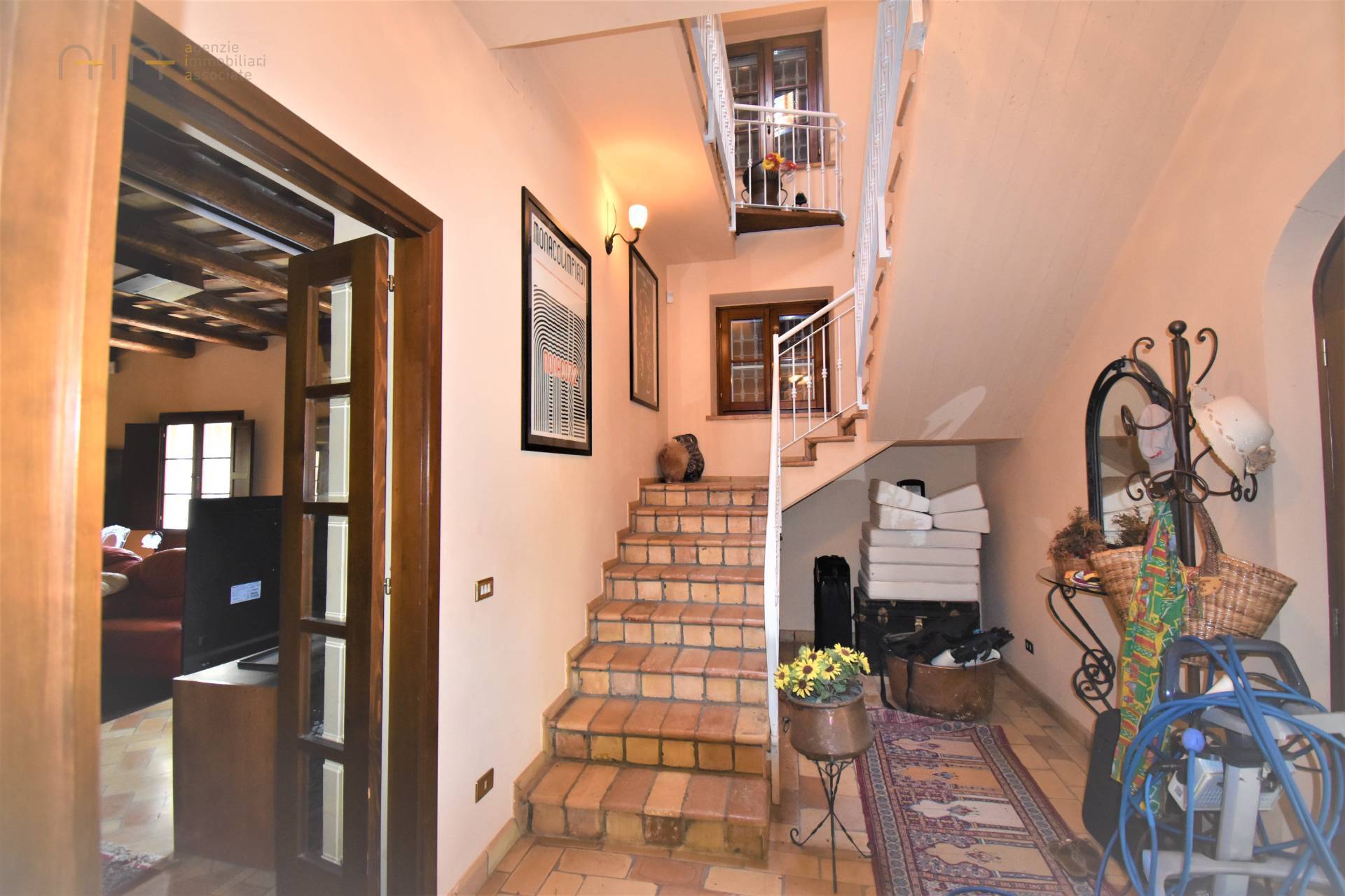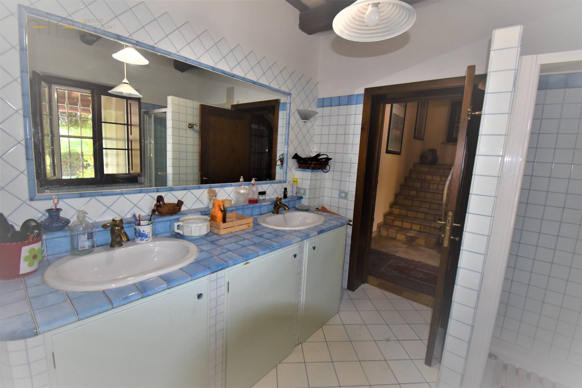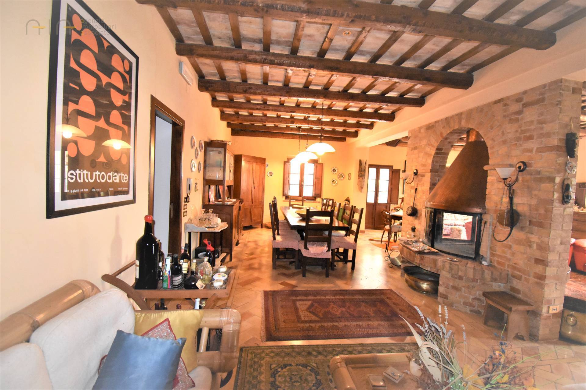 Il terreno circostante che contiene anche un ampio parcheggio è doppiamente recintato con doppi cancelli. A ovest del casolare ci sono due gazebi con forno e barbeque e un pergolato; a sud del casolare nel 2006 è stata realizzata la piscina con cascata della dimensione di 12 metri x 6 con una doppia vasca di contenimento di 15 metri x 1,40. Impianto di allarme, impianto fotovoltaico e solare termico per l'alimentazione di due caldaie, una per piano; infissi in legno con doppio vetro taglio termico, scuri all'interno, zanzariere e inferriate dappertutto