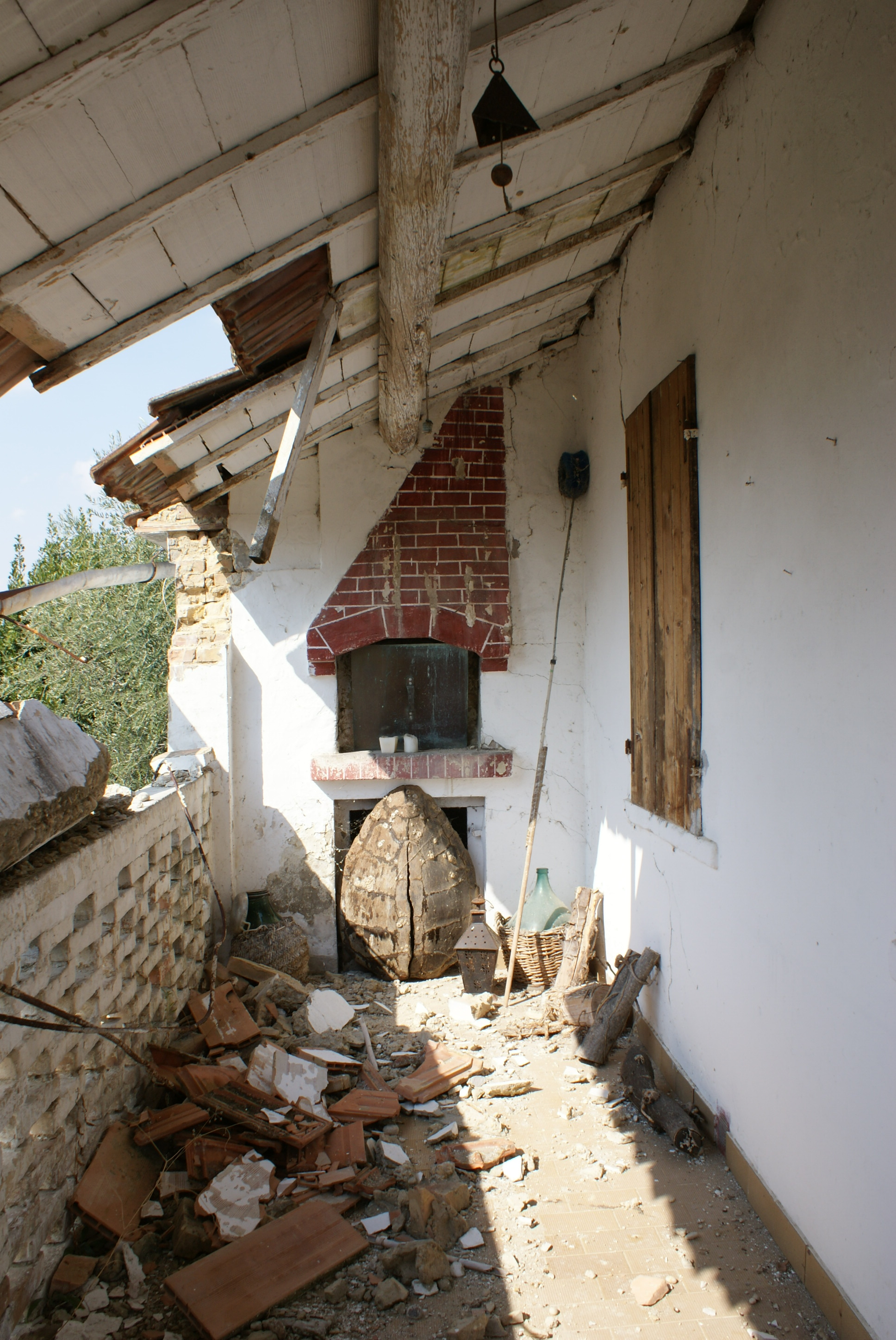 Al piano primo, accessibile tramite scala esterna in tipico stile marchigiano, si trova la parte abitativa dell'edificio che è composta da un loggiato con il forno a legna, un grande soggiorno/cucina corredato da camino, un bagno e ben 5 camere da letto, il tutto distribuito su una superficie di 160 mq circa.