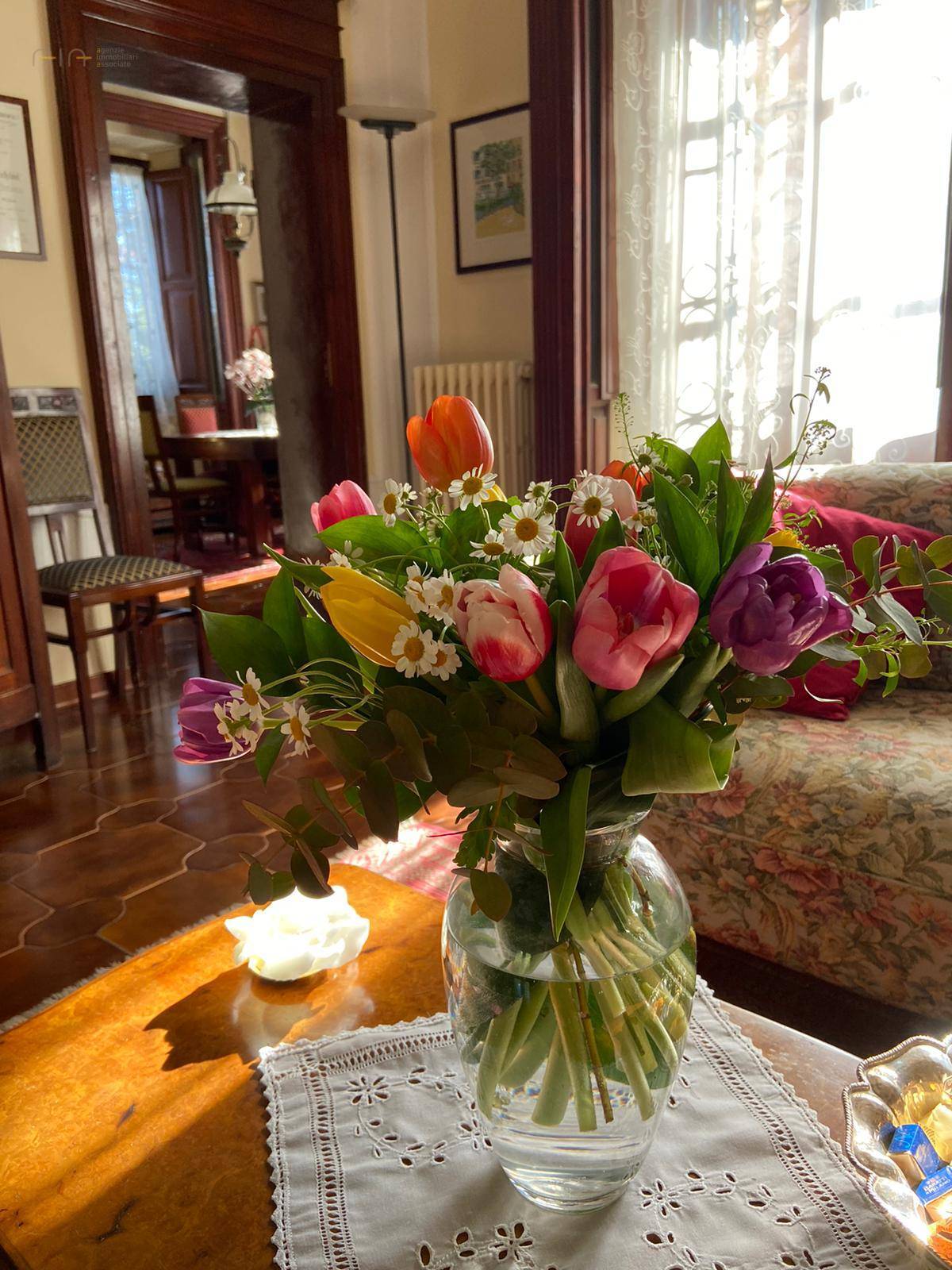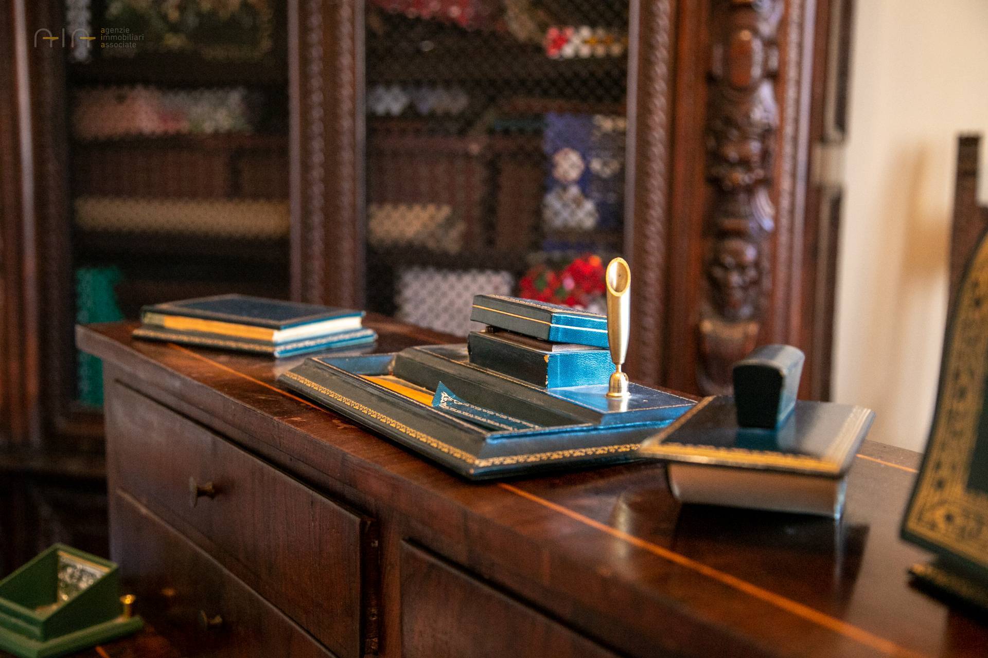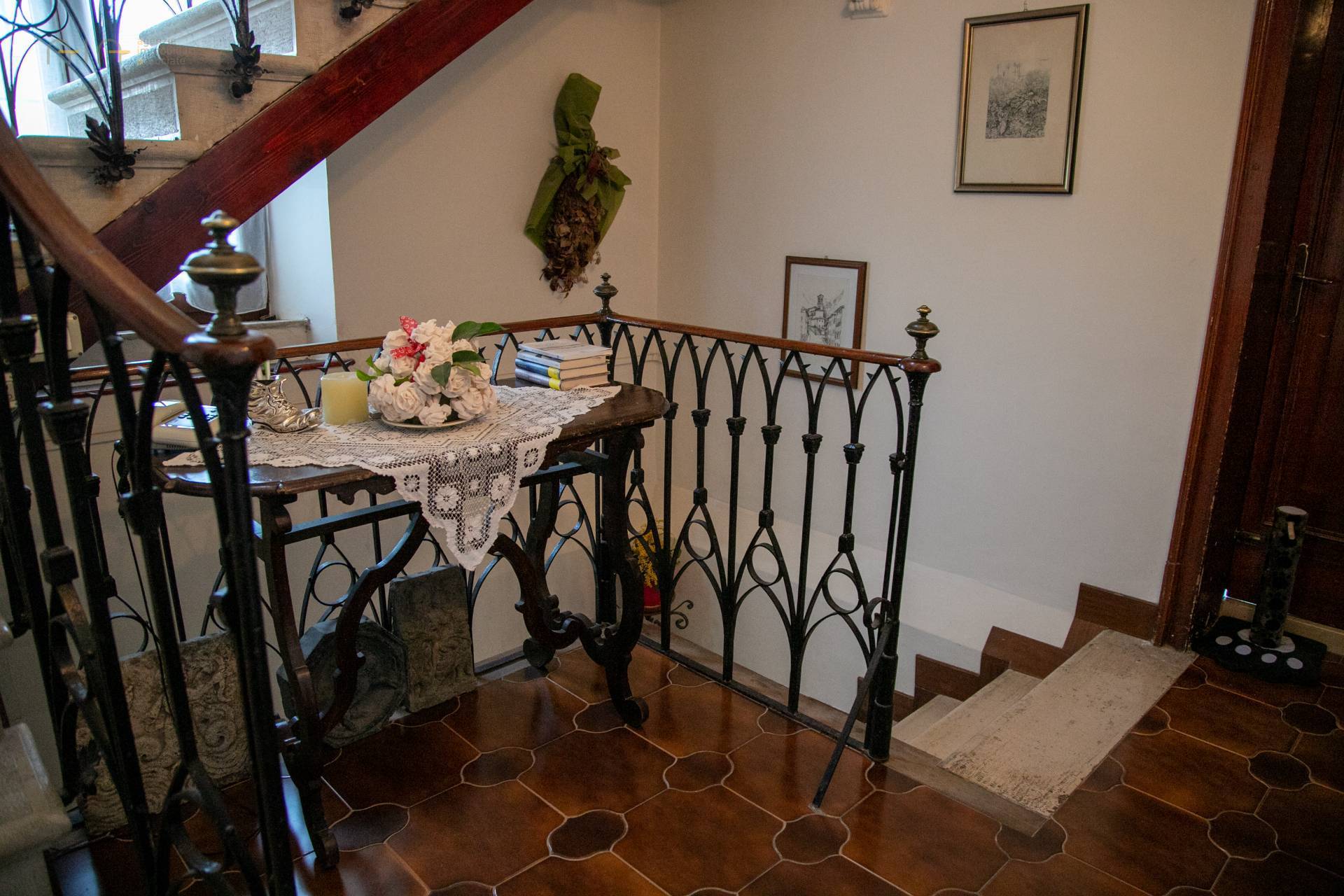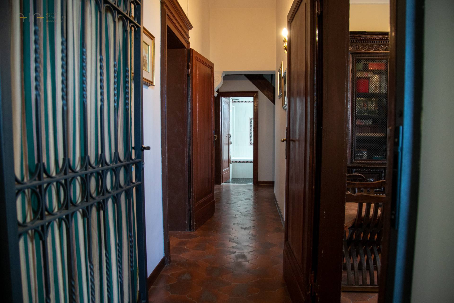 Il portone d'ingresso, così come le finestre, presentano un ricercato e prezioso stile simil-gotico; le porte interne sono originali dell'epoca, e gli infissi sono arricchiti da particolari e pregiate strutture in legno.