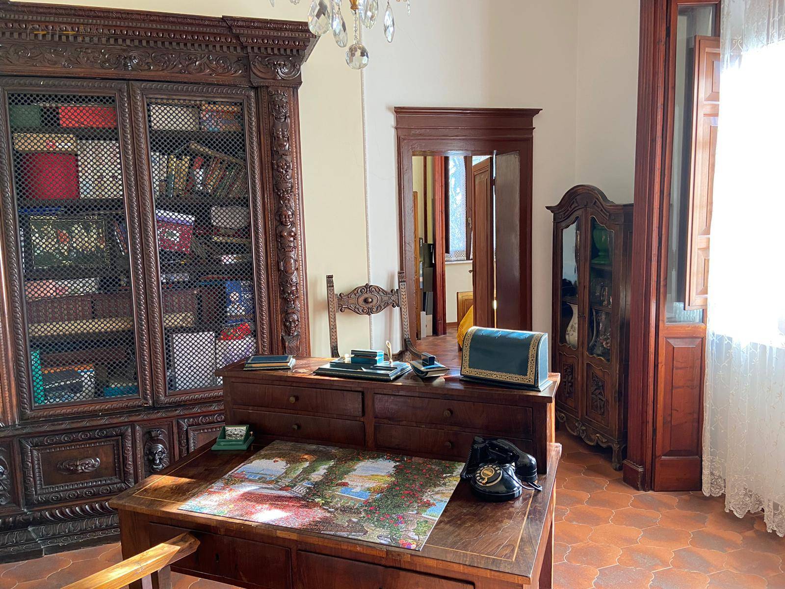 La villa è posta su tre livelli, per una superficie complessiva di mq 600 circa, all'interno di un magnifico parco di mq 3700 circa, ricco di verde, piante ornamentali e secolari.